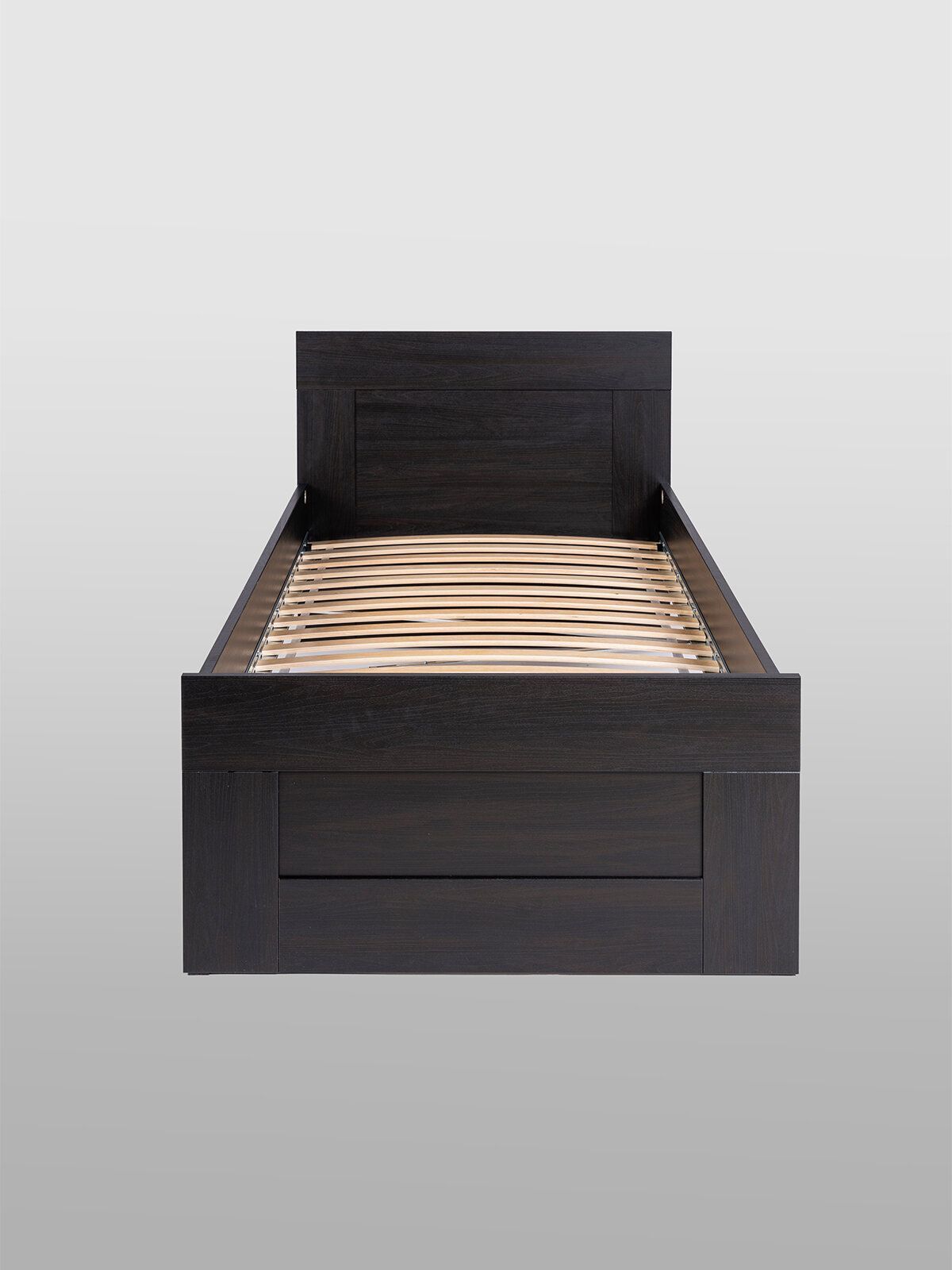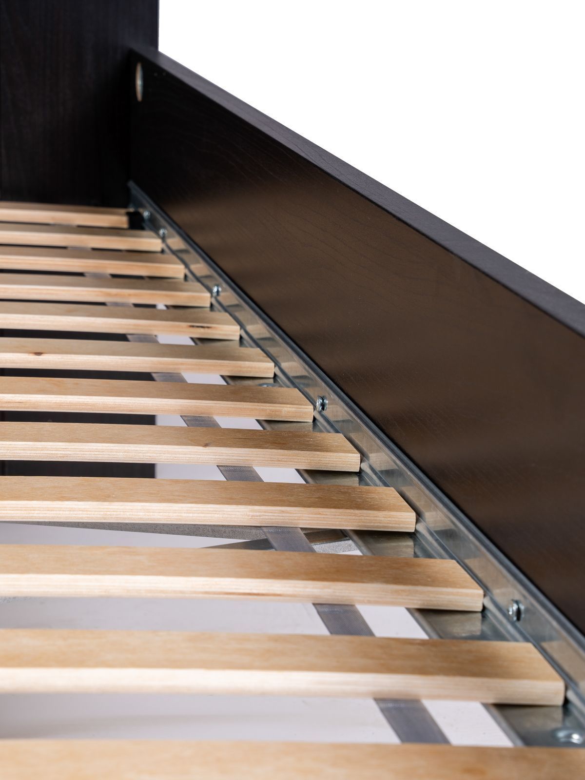 ГУД ЛАКК - знакомая мебель, которую легко купить и собрать! Односпальная кровать СИРИУС — идеальный выбор для комфортного сна и интерьера в стиле ikea.Кровать сочетает в себе простоту дизайна и практичность, а также обладает рядом преимуществ, которые сделают ваш сон более комфортным и приятным. Характеристики: Размер: 80х200 см. Материал: ДСП. Максимальная нагрузка на спальное место: 100 кг. Рекомендованная высота матраса: от 20 см и более. Высота от реечного основания до бортика: 14 см, до изножья: 18 см. Эта кровать выполнена в стиле минимализм, который никогда не выходит из моды. Она идеально впишется в любой интерьер, будь то современная квартира-студия или загородный дом. Благодаря использованию высококачественного ДСП класса экобезопасности Е0,5, эта кровать безопасна для здоровья и окружающей среды. А лаконичный дизайн без лишних деталей позволит вам наслаждаться спокойным и крепким сном. Кровать СИРИУС оснащена реечным основанием, которое обеспечивает хорошую циркуляцию воздуха и способствует правильному распределению нагрузки на позвоночник. Кроме того, она имеет высоту от пола до реечного основания 14 см, что обеспечивает удобство при посадке и вставании. Обратите внимание, что матрас не входит в комплект поставки. Если вы предпочитаете хранить вещи под кроватью, то обратите внимание на то, что выкатные ящики не входят в комплектацию кровати СИРИУС. Вы можете приобрести их отдельно, чтобы максимально использовать пространство под кроватью. Ящик выкатной для кроватей СИРИУС и ОРИОН, 60х60х20 см, черно-коричневый, дуб венге, код товара 817251994Ящик выкатной для кроватей СИРИУС и ОРИОН, 138х60х20 см, черно-коричневый, дуб венге код товара 817252024Ключевые особенности: Материал: ДСП. Стиль: минимализм. Экологичность: класс экобезопасности ДСП Е0,5.Комплектация: без матраса и выкатных ящиков. Односпальная кровать СИРИУС станет отличным выбором для тех, кто ценит комфорт, практичность и стиль. Она подарит вам спокойный и крепкий сон, а также станет стильным дополнением к вашему интерьеру.