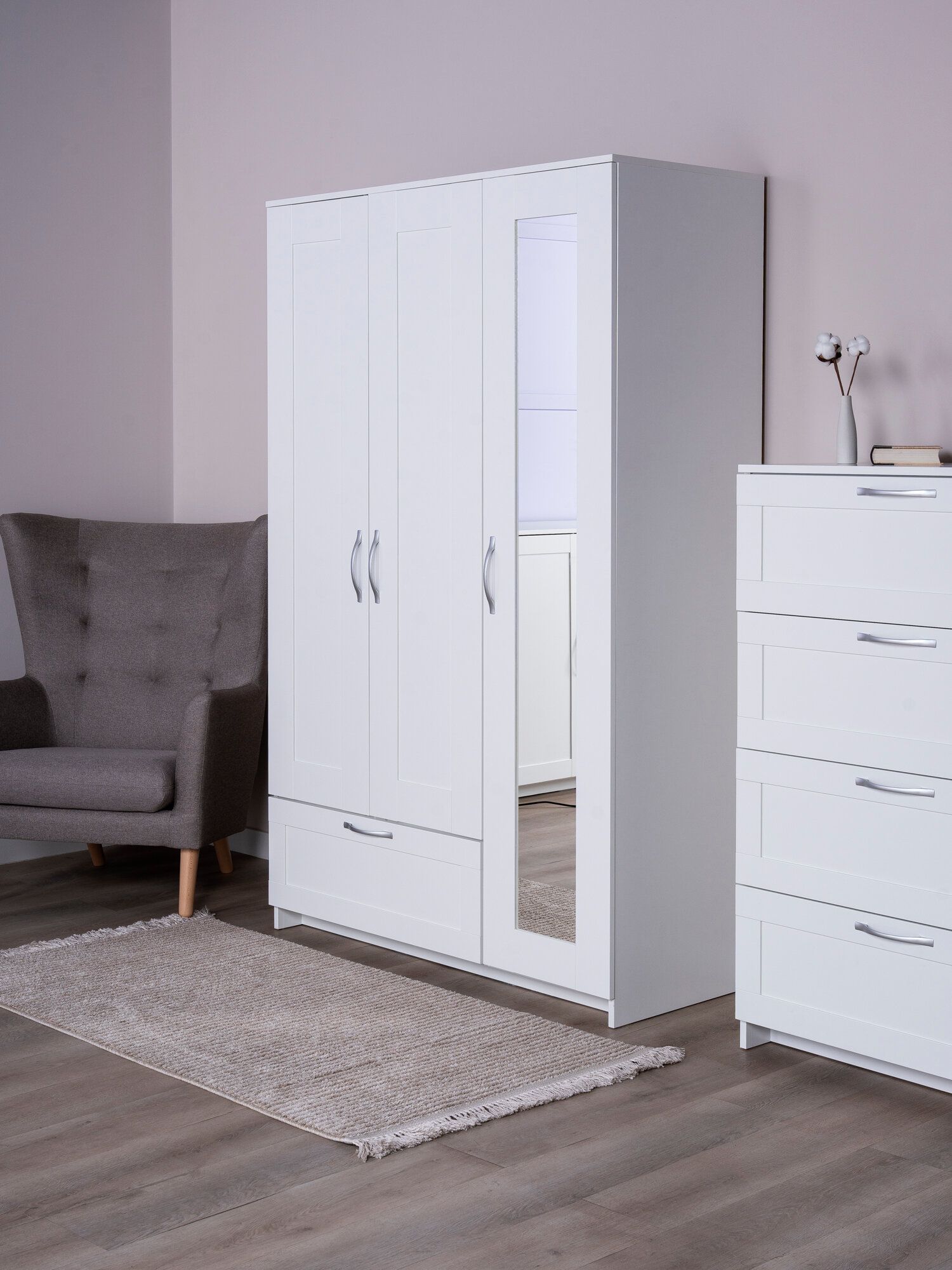 У меня уже есть комод из этой серии и качество мне нравится. Я главное хочу сказать, если у вас нет опыта в сборке шкафов, то делайте все просто по инструкции (благо она отличная). Я все делала как надо до момента прикручивания дверей и получилась огромная щель. Рабочий мой обещал отрегулировать, надеюсь получится. Но это произошло именно из-за того, что я решила сделать по-своему и прикрутить дверцы навесу. А боковую с зеркалом вешала как в инструкции написано и все вышло куда проще и быстрее. И красивее)