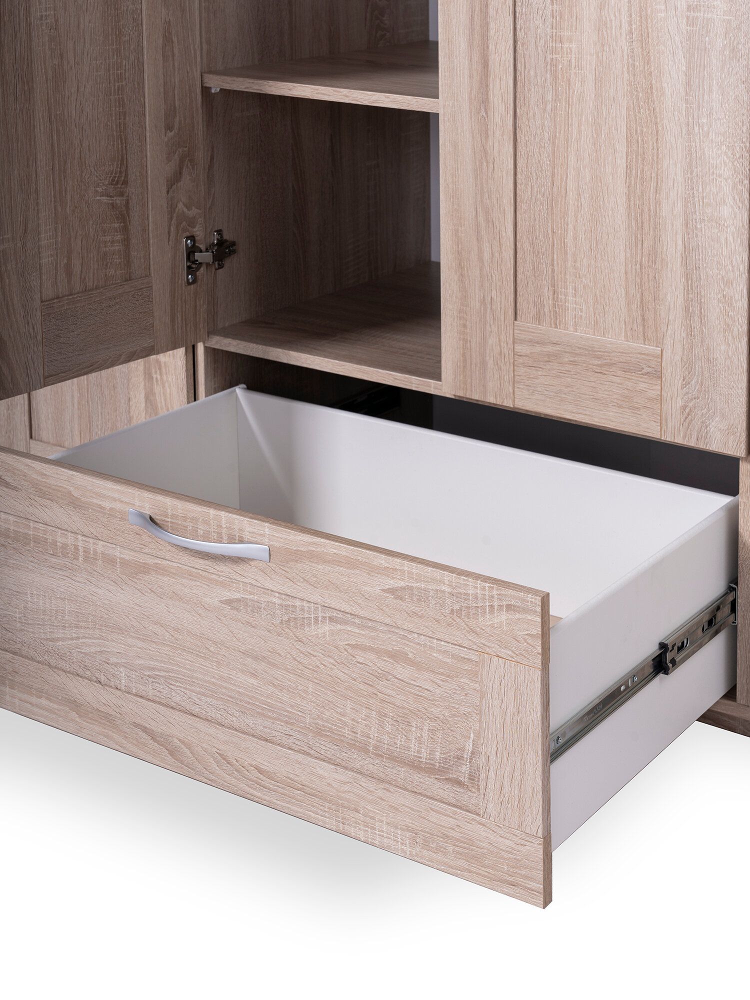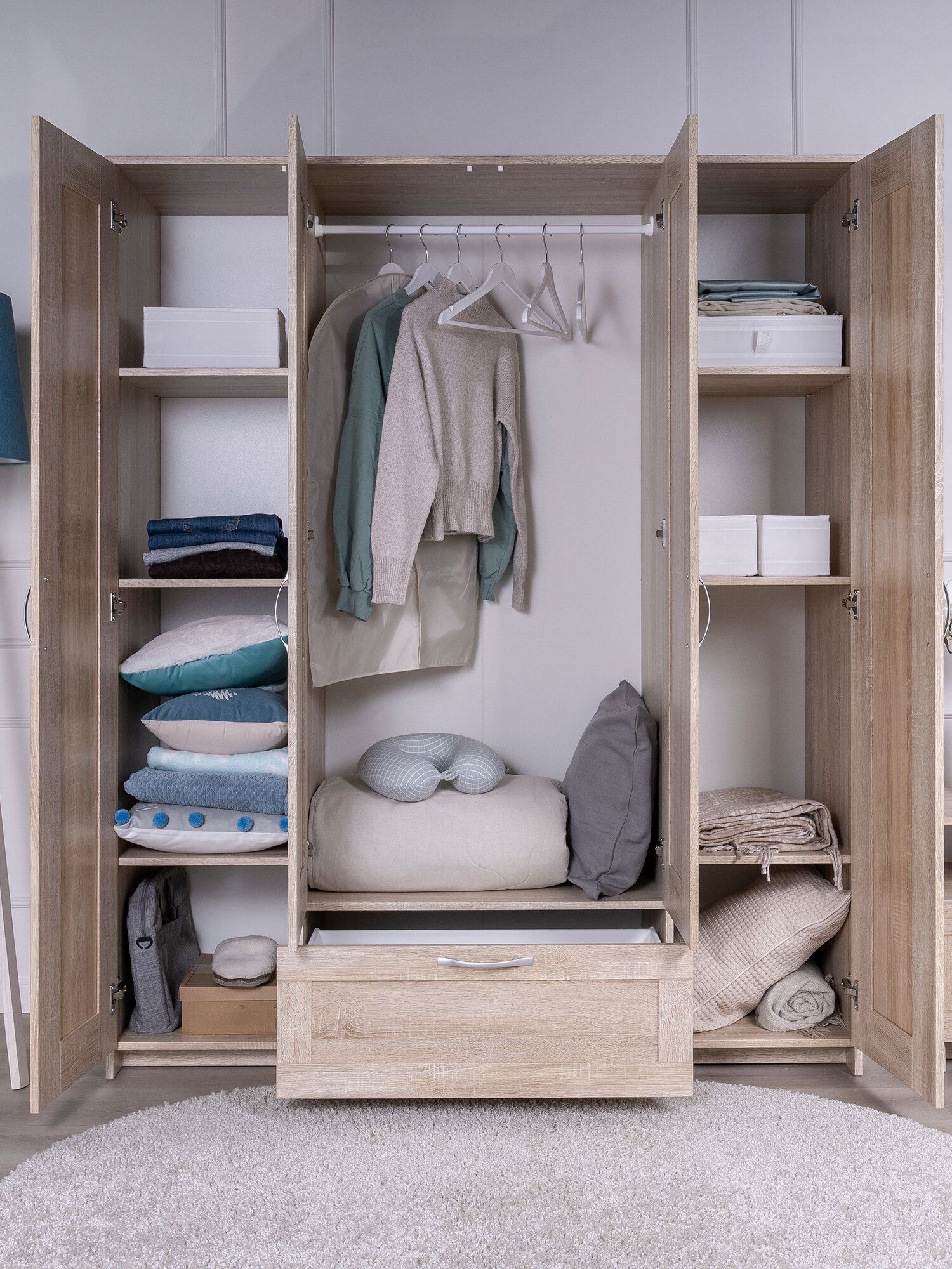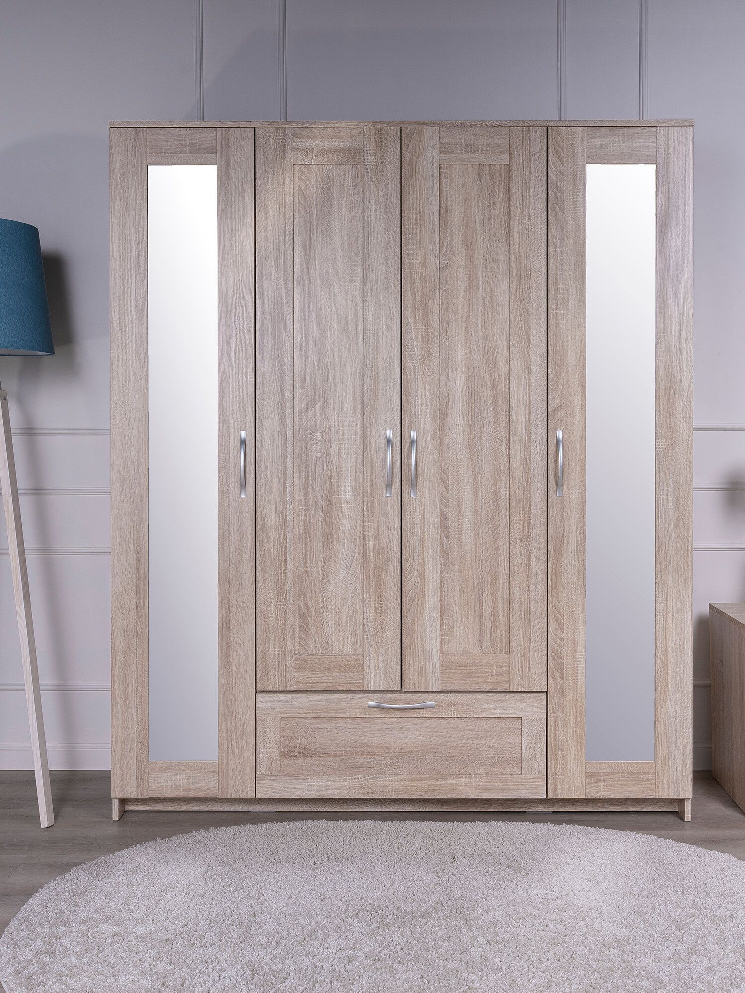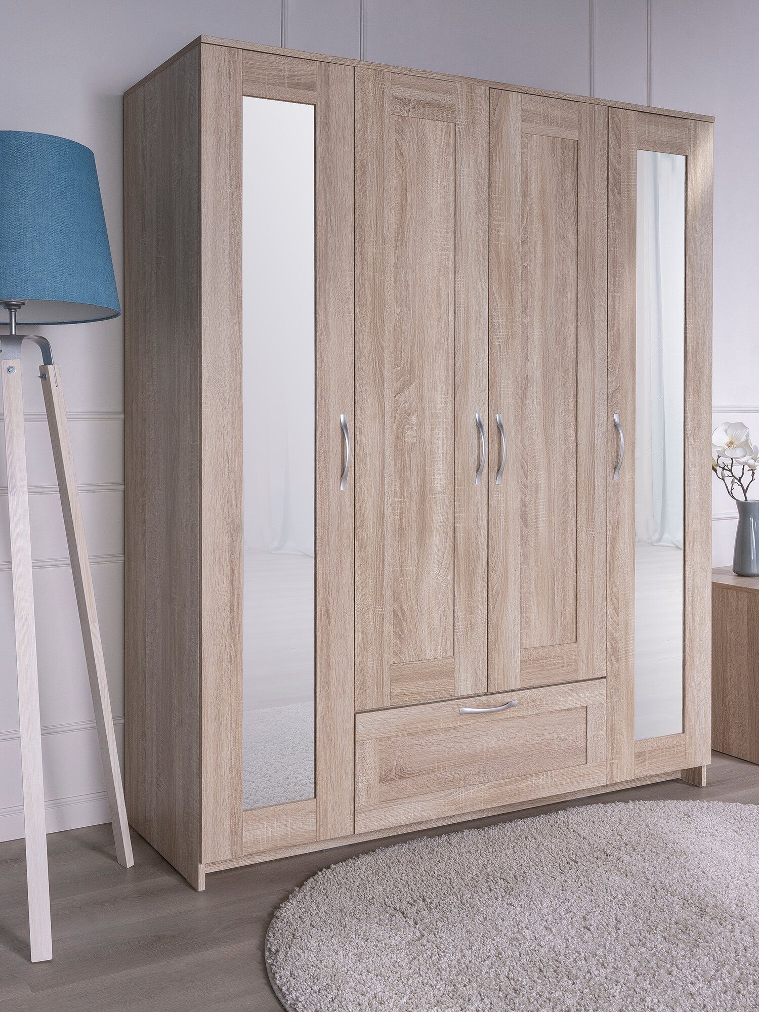 ГУД ЛАКК - знакомая мебель, которую легко купить и собрать! Шкаф ГУД ЛАКК СИРИУС, 4 двери и 1 ящик с зеркалами, 190x156x50 см — элегантность и качество в каждой детали! Серия мебели СИРИУС вдохновлена популярной серией BRIMNES от IKEA, и станет идеальным дополнением вашей квартиры. Почему выбирают Шкаф ГУД ЛАКК СИРИУС, 4 двери и 1 ящик с зеркалами, 190x156x50 см? Шкаф СИРИУС — это стильное и функциональное решение для хранения, которое сочетает в себе практичность, элегантный дизайн и продуманную организацию пространства. Филенчатые фасады придают шкафу изысканный вид, делая его украшением любого интерьера, а зеркало позволит подобрать идеальный образ. Внутри шкафа расположена прочная платяная штанга, на которой можно разместить одежду на плечиках, сохраняя ее в идеальном состоянии. Просторное внутреннее пространство с тремя дверцами позволяет организовать хранение одежды, обуви, аксессуаров или других вещей. Внешний выдвижной ящик с удобной ручкой предназначен для хранения мелких вещей, аксессуаров или белья. Его можно использовать, не открывая дверцы шкафа, что делает доступ к вещам быстрым и удобным. Так же внутри есть 8 полок, которые можно отрегулировать по высоте для разных вещей. Шкаф имеет оптимальные размеры, что делает его подходящим для небольших помещений, таких как спальни, прихожие, гостевые комнаты или даже гардеробные. Он не занимает много места, при этом остается вместительным. Шкаф СИРИУС — это идеальное сочетание стиля, функциональности и доступности. Он станет надежным помощником в организации хранения, создании уютной атмосферы и поддержании порядка в вашем доме. Благодаря своему универсальному дизайну и продуманной конструкции, этот шкаф будет радовать вас долгие годы!