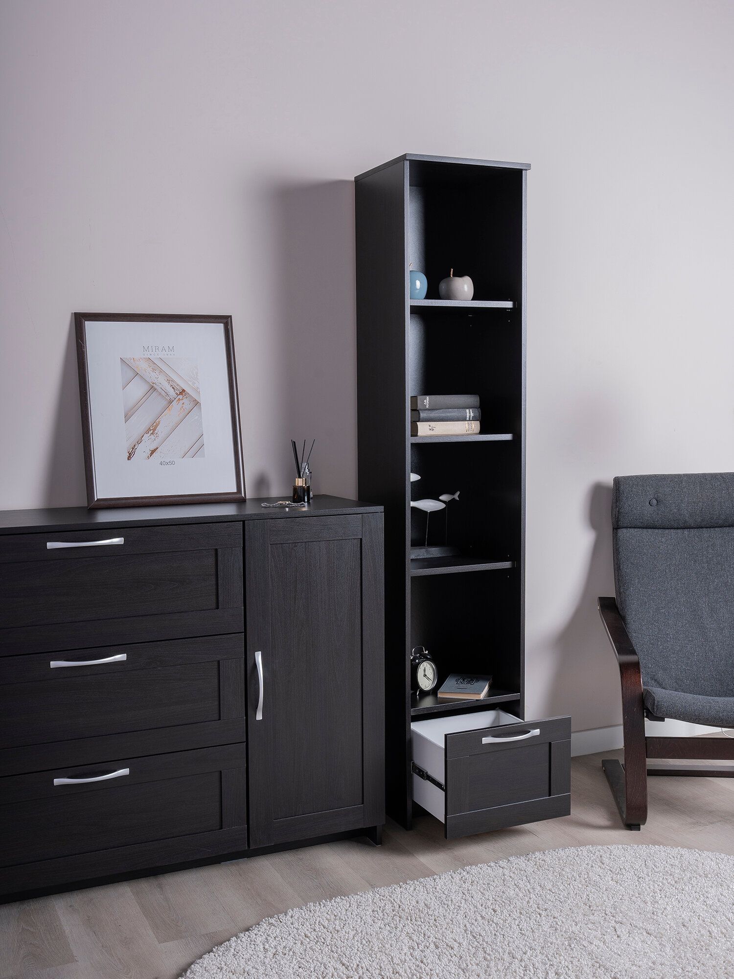 ГУД ЛАКК - знакомая мебель, которую легко купить и собрать! Лаконичный стеллаж СИРИУС будет знаком поклонникам Икеа по серии БРИМНЭС. Он прекрасно впишется в любой интерьер от лофта до классики. Вместит в себя игрушки, фигурки и полезные мелочи. Деревянный стеллаж для книг выдерживает нагрузку до 12 кг на каждую полку, поэтому все любимые издания всегда будут под рукой. Исходное качество, оригинальное лакокрасочное покрытие и надежная фурнитура - всё, как вы любите! Товары ГУД ЛАКК изготовлены на современных фабриках в Беларуси, которые производили мебель для широко известной шведской сети гипермаркетов. По отзывам наших прекрасных покупательниц, сборка стеллажей ГУД ЛАКК под силу женщинам при наличии шуруповёрта. Поставляется в разобранном виде, со всеми необходимыми комплектующими, инструкцией и схемой по сборке. Дополнительные характеристикиВнутренний размер ящика: 699х362 ммРазмер полки: 357х300 ммРасстояние между полками: 330 ± 32; 365 ± 32; 330 ± 32; 340 ± 32; 375 ± 32 ммМакс. нагрузка на крышку не более 15 кгМакс. нагрузка на ящик не более 8 кг