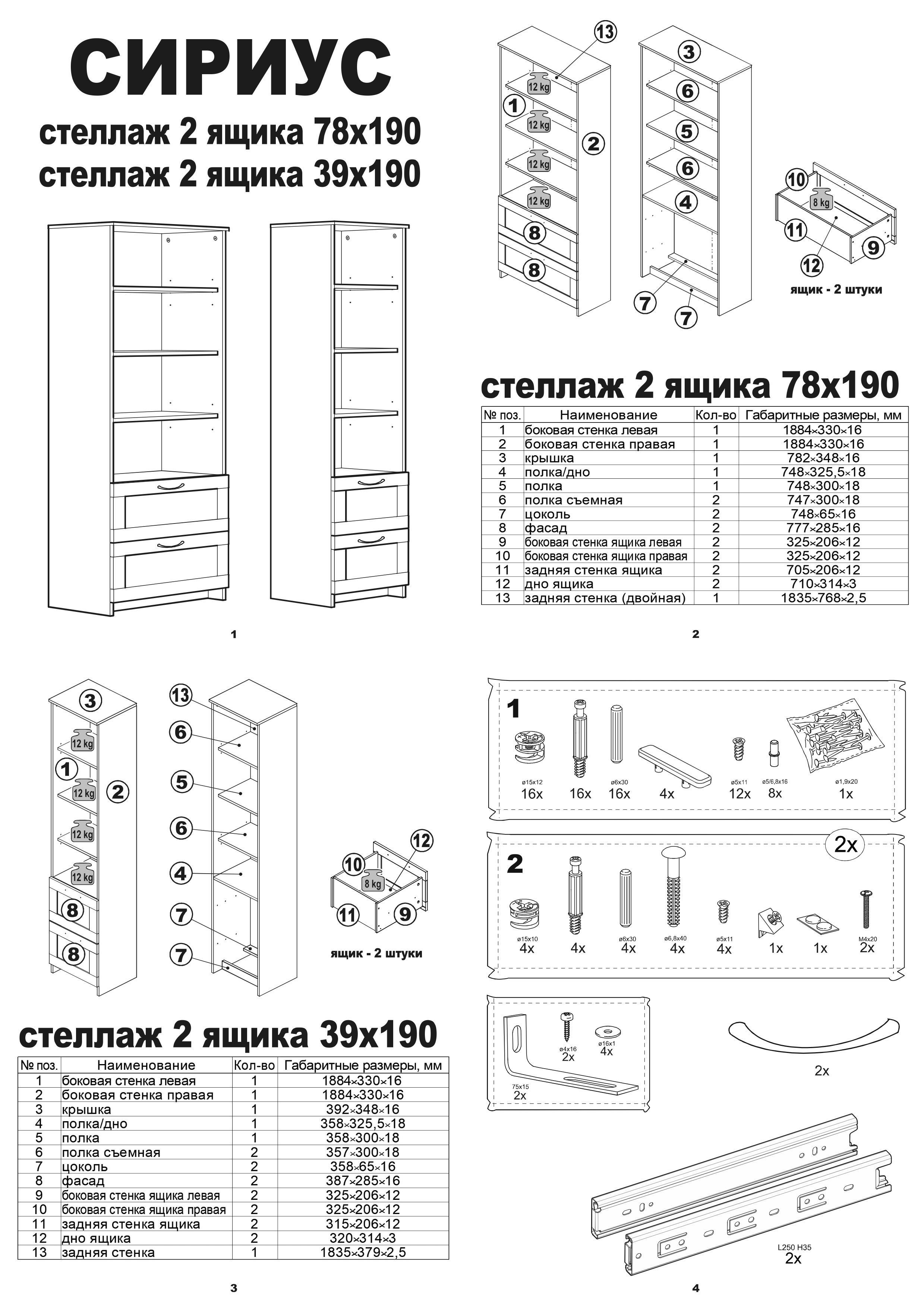 ГУД ЛАКК - знакомая мебель, которую легко купить и собрать! Лаконичный стеллаж СИРИУС будет знаком поклонникам Икеа по серии БРИМНЭС. Он прекрасно впишется в любой интерьер от лофта до классики. Вместит в себя игрушки, фигурки и полезные мелочи. Узкий стеллаж для книг выдерживает нагрузку до 12 кг на каждую полку, поэтому все любимые издания всегда будут под рукой. Исходное качество, оригинальное лакокрасочное покрытие и надежная фурнитура - всё, как вы любите! Товары ГУД ЛАКК изготовлены на современных фабриках в Беларуси, которые производили мебель для широко известной шведской сети гипермаркетов IKEA. По отзывам наших прекрасных покупательниц, сборка стеллажей ГУД ЛАКК под силу женщинам при наличии шуруповёрта. Поставляется в разобранном виде, со всеми необходимыми комплектующими, инструкцией и схемой по сборке. Дополнительные характеристики Внутренний размер ящика: 309х362 мм Размер полки: 357х300 мм Макс. нагрузка на крышку не более 15 кг Макс. нагрузка на ящик не более 8 кг