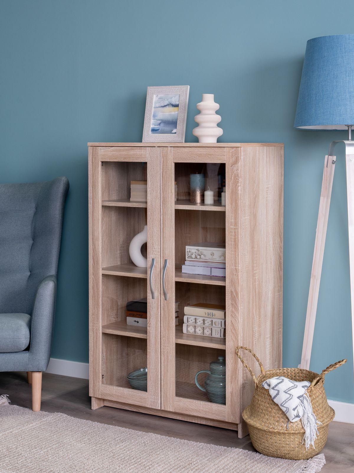 отлично подошёл, приятный цвет, муж легко собрал, меня радует наличие дверок. высокий, но как раз,чтобы поставить принтер или колонки