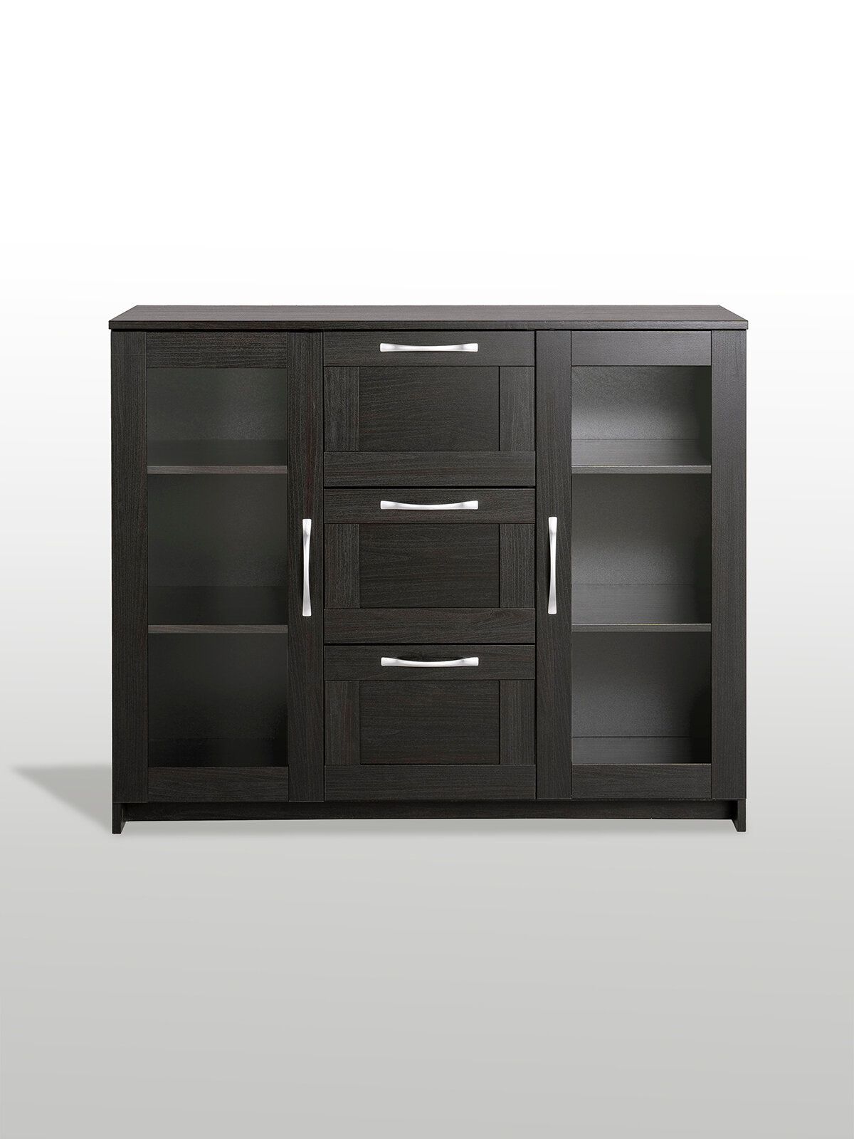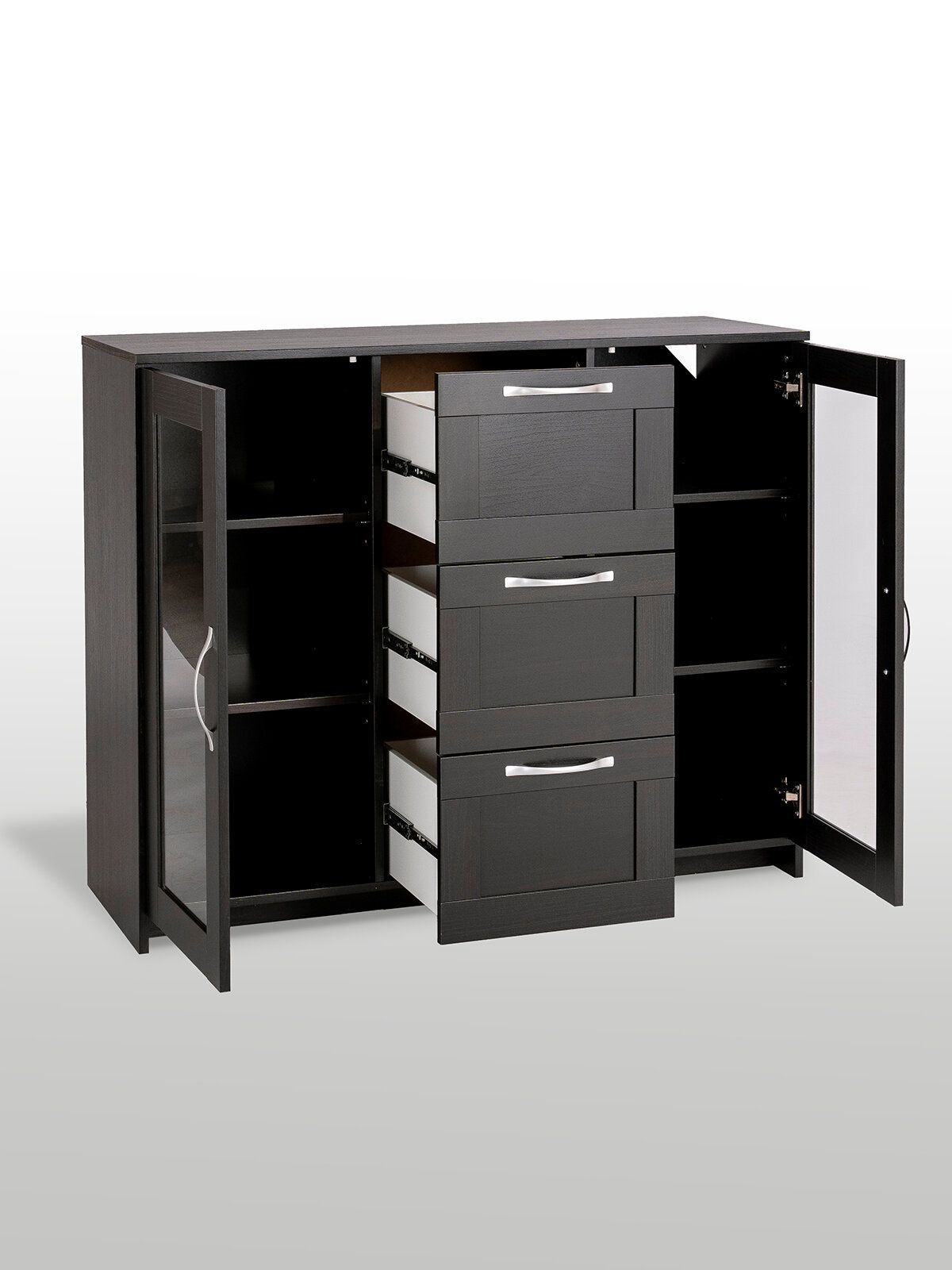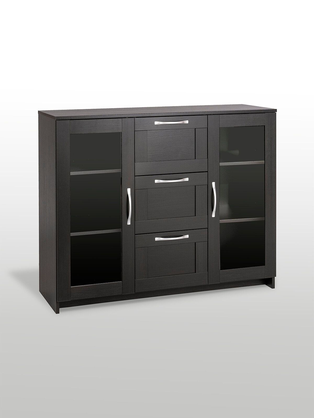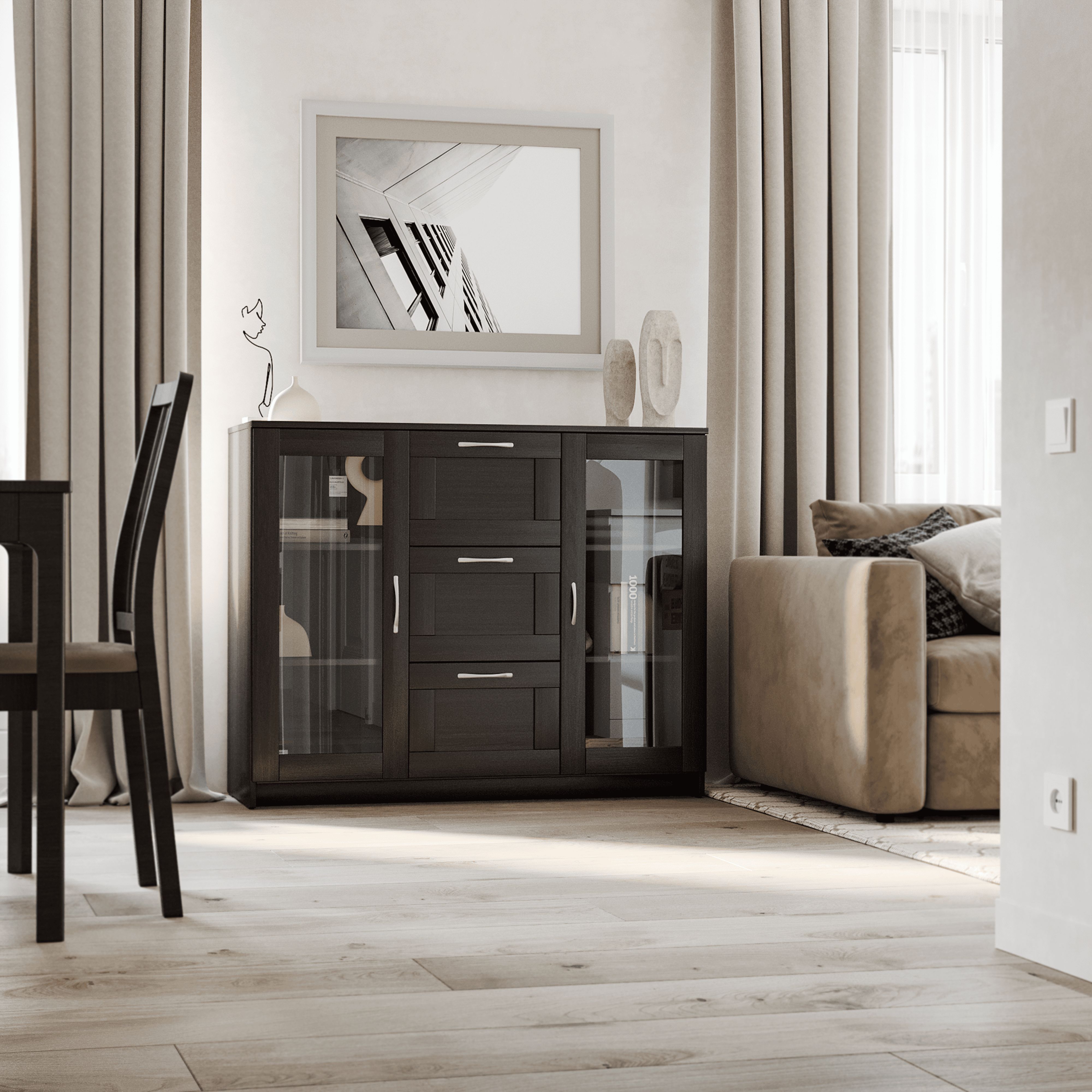Тумба Сириус, 2 двери со стеклом и 3 ящика, 117х41х95 см, дуб венге, черно-коричневая