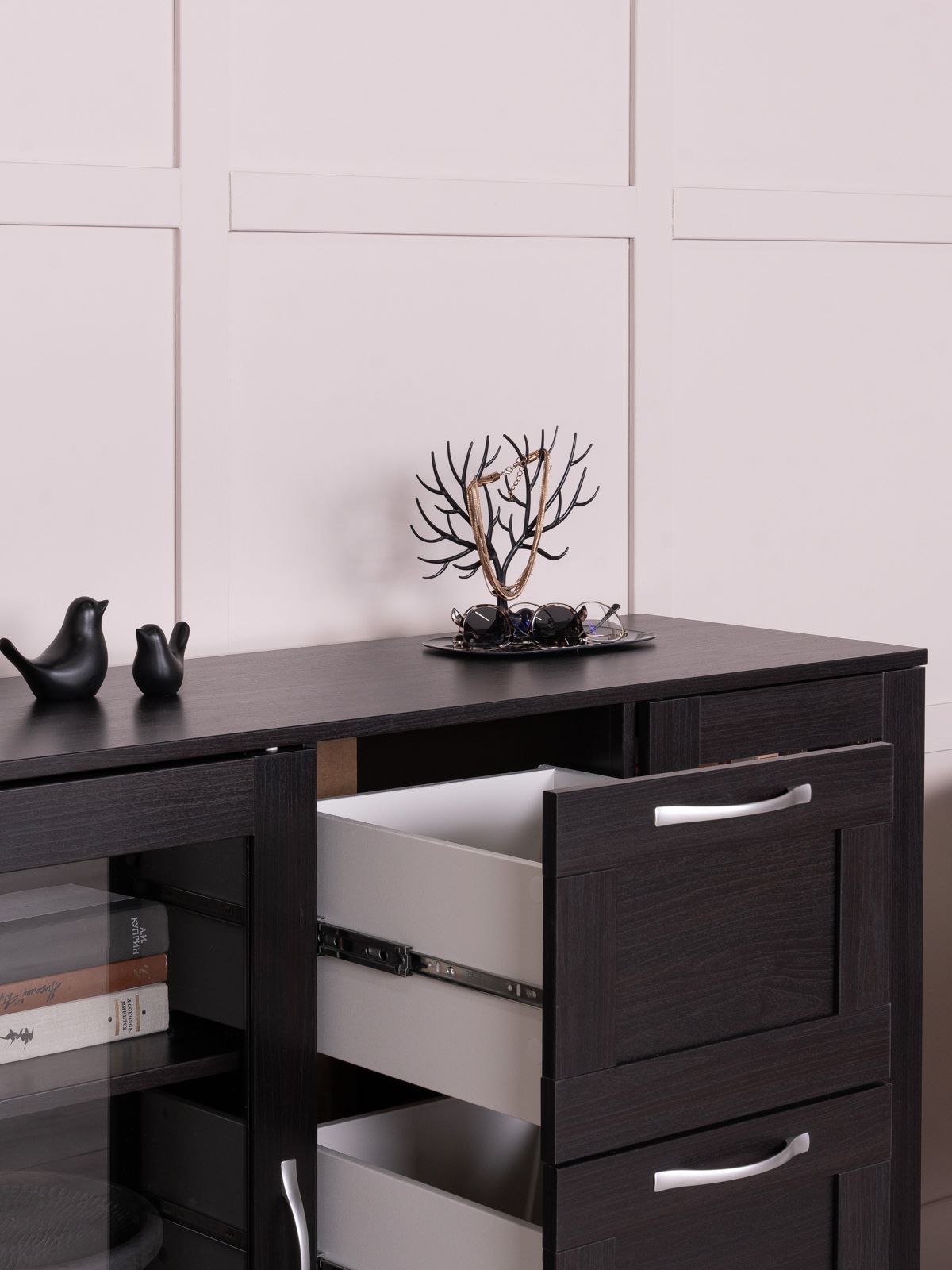 ГУД ЛАКК - знакомая мебель, которую легко купить и собрать! Тумба-витрина СИРИУС будет знакома поклонникам мебели IKEA по серии BRIMNES. Продуманный дизайн и функциональность не оставят равнодушными любителей скандинавского стиля в интерьере. Компактная тумба отлично впишется в гостиную или столовую и будет бережно хранить книги, одежду или памятные сувениры. Товары ГУД ЛАКК изготовлены на сертифицированных фабриках в Беларуси, которые производили мебель для широко известной шведской сети гипермаркетов ИКЕА: исходное качество, оригинальное лакокрасочное покрытие, надежная фурнитура, простая сборка, с которой справится даже хрупкая девушка при наличии шуруповерта. Обратите внимание, что ящики в тумбе без доводчиков.