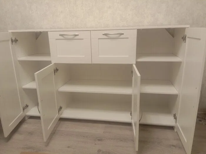 Красивый,вместительный комод,сборка понятная,упакованно на отлично. Все хорошо,понравился комод,лаконичный,стильный,большой, как и хотела,присматриваю ещё такой , только со стеклянными дверцами.К покупке советую.