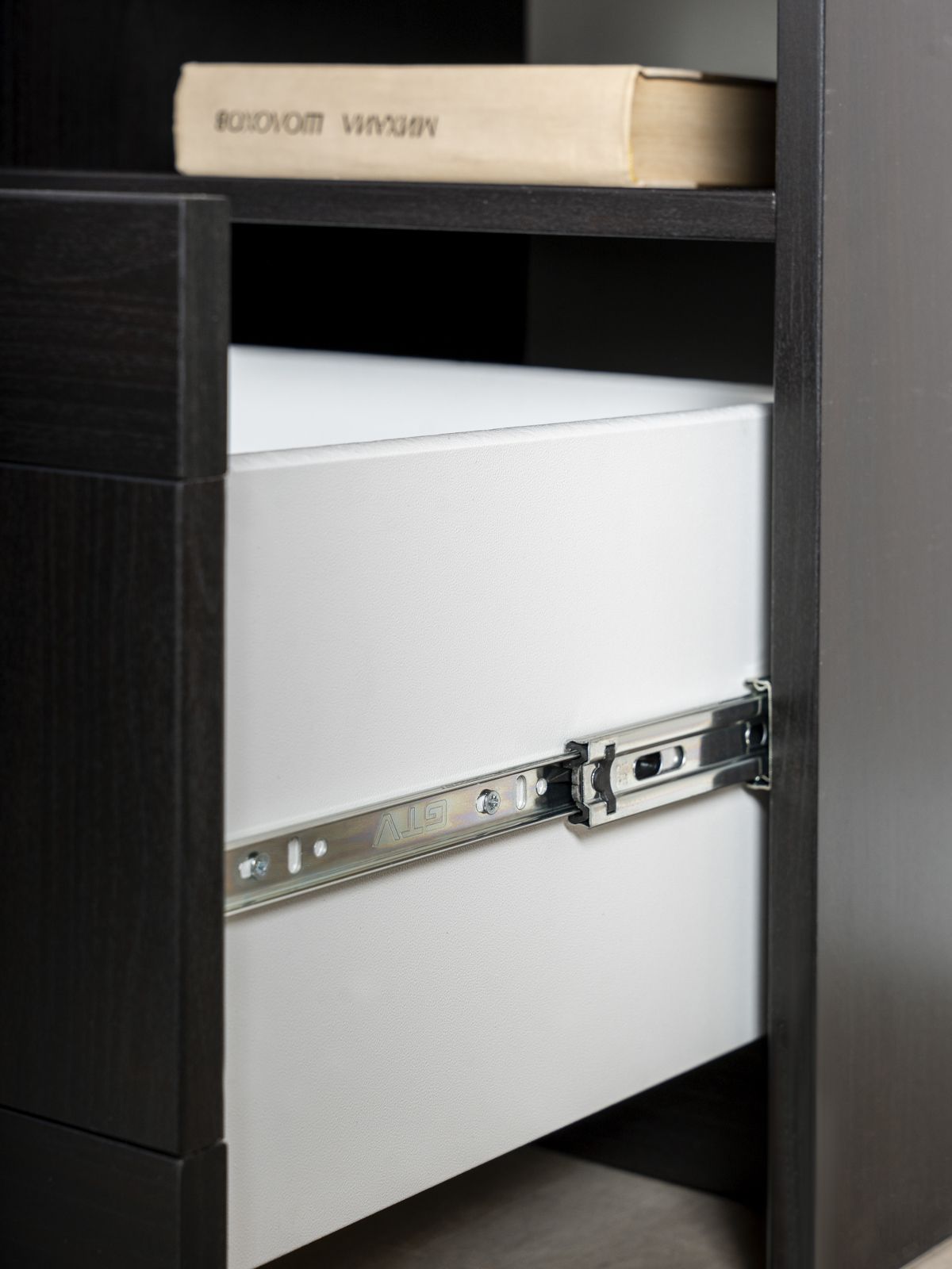 компактная с глубоким выдвижным ящиком. Собрали быстро, все отверстия совпали. соотношение цена-качество очень порадовало