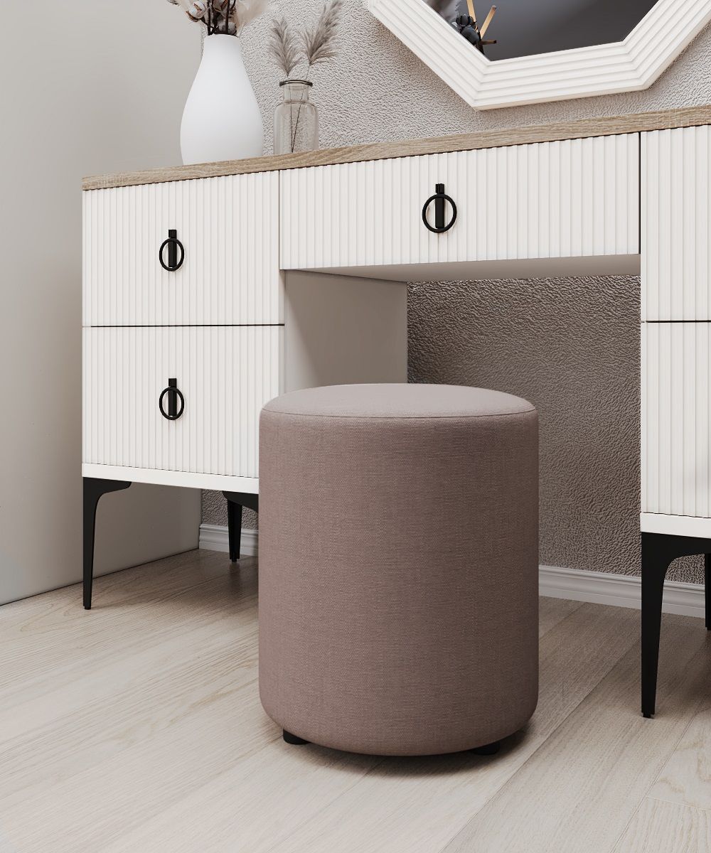 Туалетный стол "Стелла" придает интерьеру особый современный шарм. Просторная столешница и удобные выдвижные ящики, оснащенные доводчиками, обеспечивают максимальную функциональность и комфорт в вашей спальне такой столик можно использовать как косметический в паре с зеркалом, так и как рабочий стол для студента или школьника. Мягкий стильный пуф является дополнением к туалетному столу