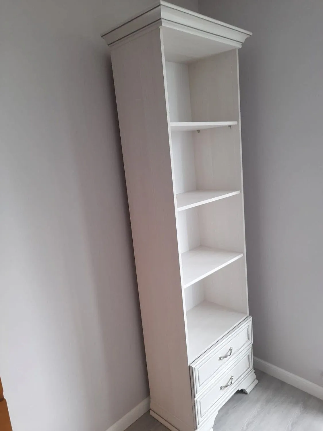 Любители классической мебели по достоинству оценят открытый белорусский шкаф Tiffany коллекции 2S. Этот узкий пенал высотой 212 см и шириной 69 см займет маленькое пространство и уютно разместит на своих полках книги и предметы декора. В его верхней части находится три отделения, а внизу установлено два выдвижных ящика.