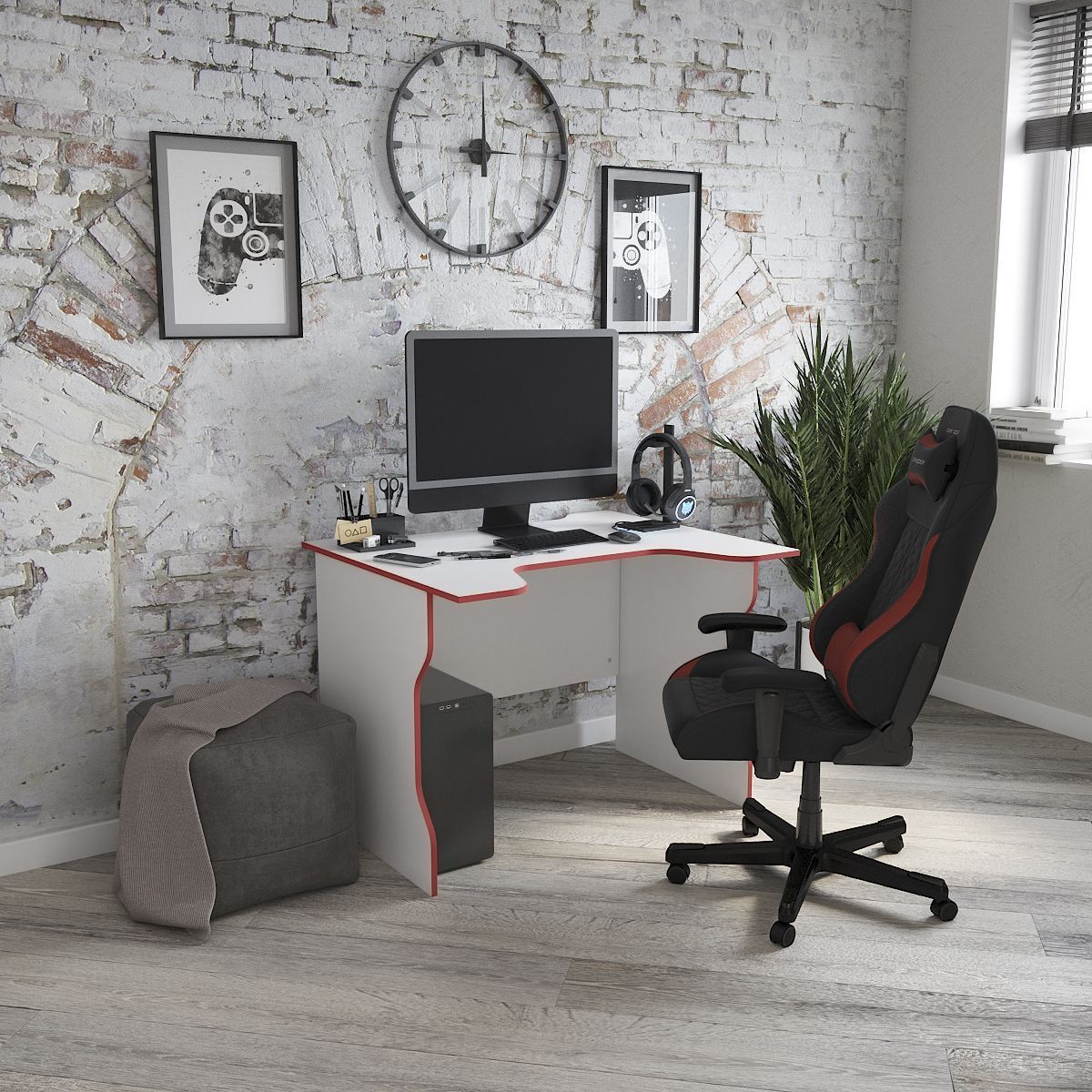 Стол компьютерный Вардиг, 100х75х82 см, белый/красный