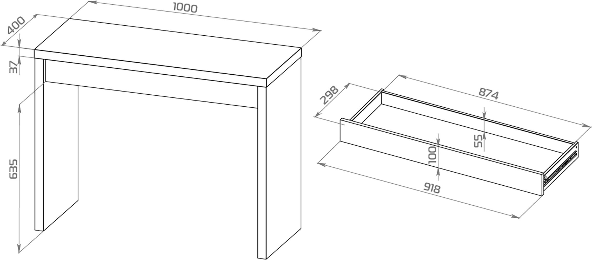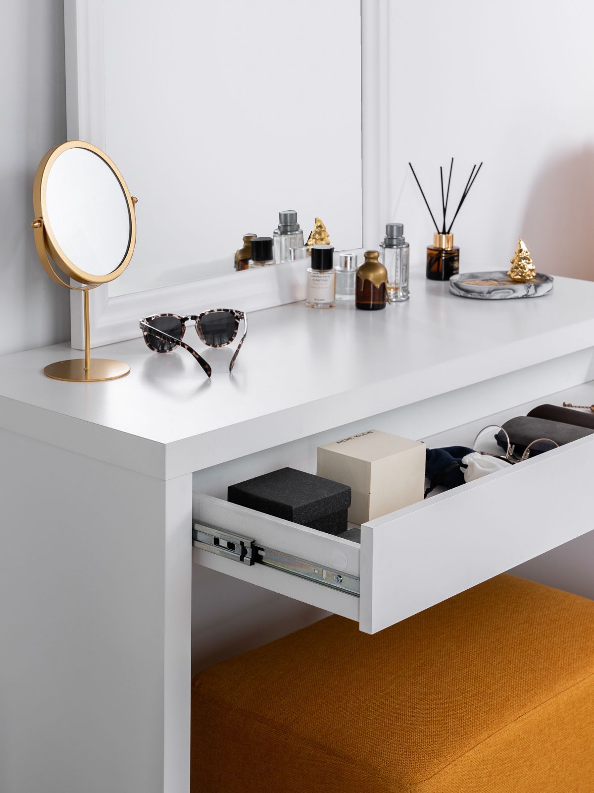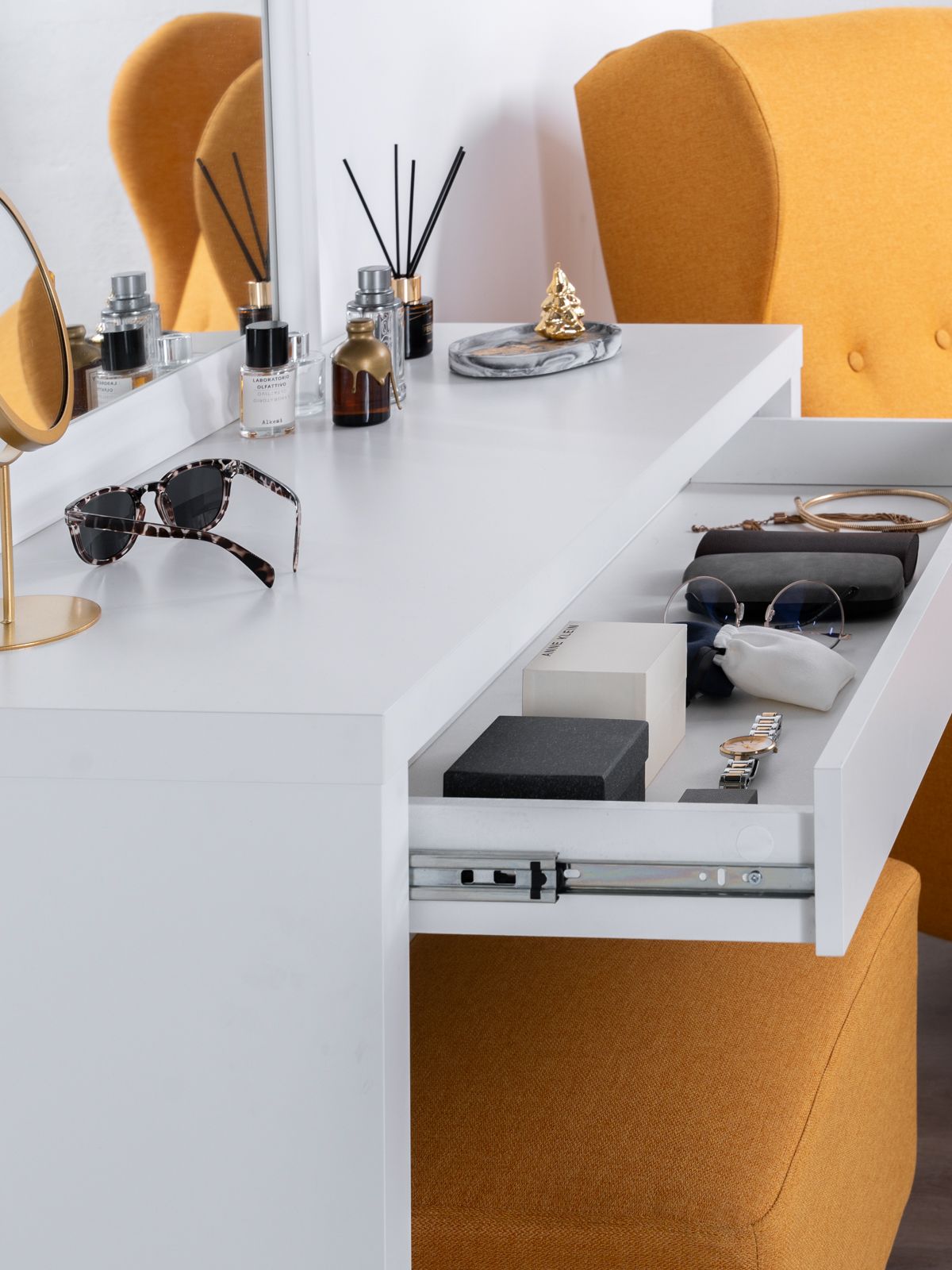 ГУД ЛАКК - новое имя бренда Шведский Стандарт.Туалетный стол Энкель выполнен из тамбурата, а это значит, что он очень легкий, но в то же время прочный, долговечный и экологичный. Туалетный стол для макияжа отличное решение для прекрасных дам! Наш стол оснащен выдвижным ящикам, для хранения косметики и аксессуаров. Косметический стол вписывается в любой интерьер благодаря своему универсальному белому цвету и минималистичному дизайну. Сочетает в себе функциональность с элегантность. Наша мебель выполнена в скандинавском стиле, но сможет вписаться и в разнообразные по стилю интерьеры: современный и классический стиль, лофт. Качественная, недорогая, красивая, функциональная мебель в любой точке России, Беларуси и других стран СНГ. ГУД ЛАКК - для Вашего дома! Поставляется в разобранном виде, со всеми необходимыми комплектующими, инструкцией и схемой по сборке. Размер изделия: Высота – 78 см; Ширина – 40см; Длина – 100 см. Материал и толщина корпуса-Тамбурат(облегченная сендвич панель с заполнением сотовым материалом, кашированная специальной окрашенной бумагой_ 37мм Максимальная нагрузка не более 15 кг Рекомендуем протирать тканью, смоченной мягким моющим средством. Вытирать чистой сухой тканью. Срок гарантии: 24 месяца при условии эксплуатации в качестве домашней мебели. 18 месяцев при эксплуатации в общественных местах. Условия сохранения гарантии: Температура не ниже +2Со, влажность 45-60%