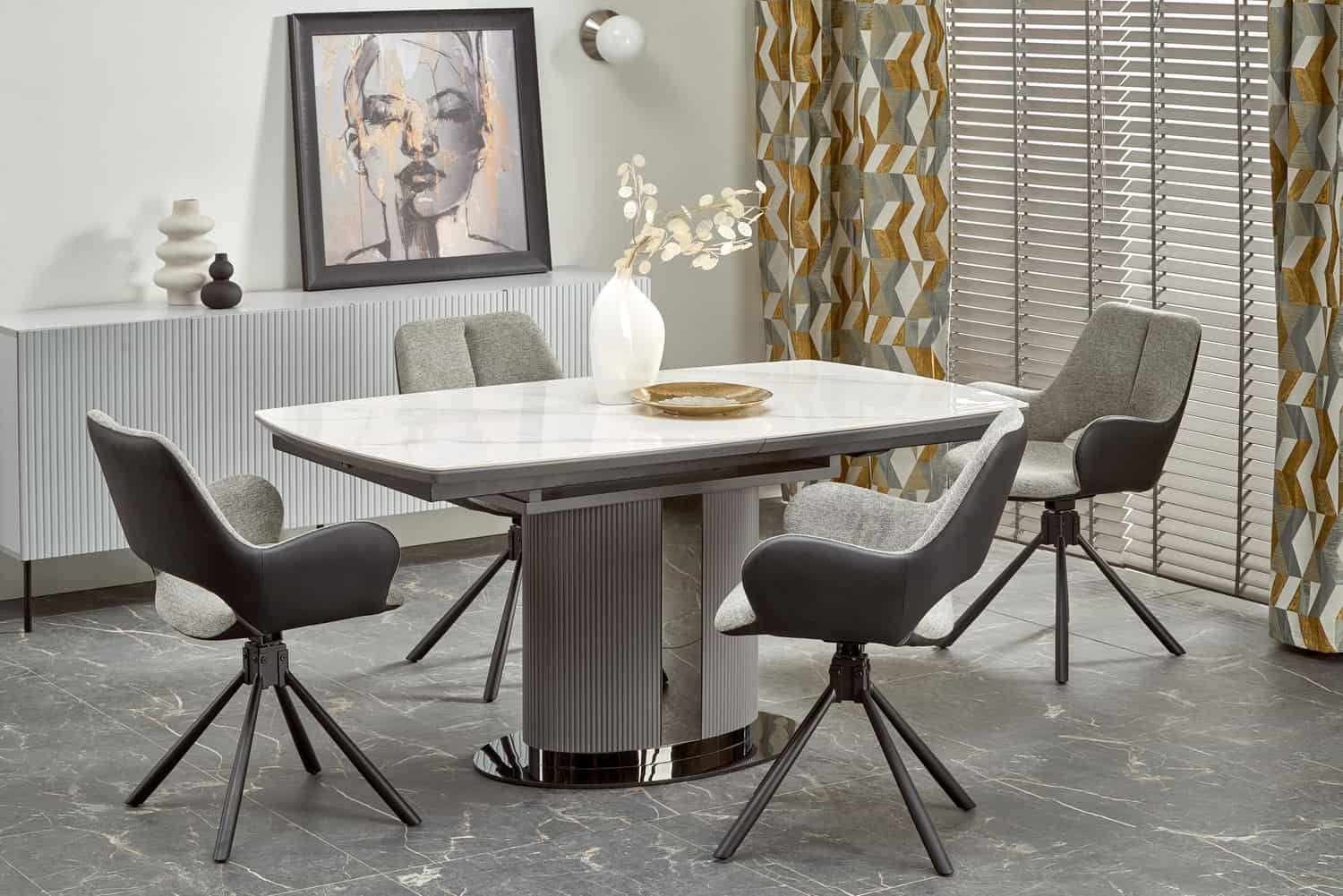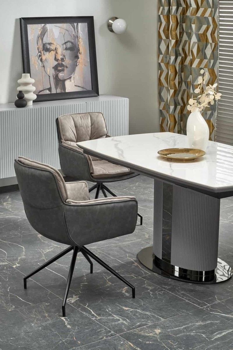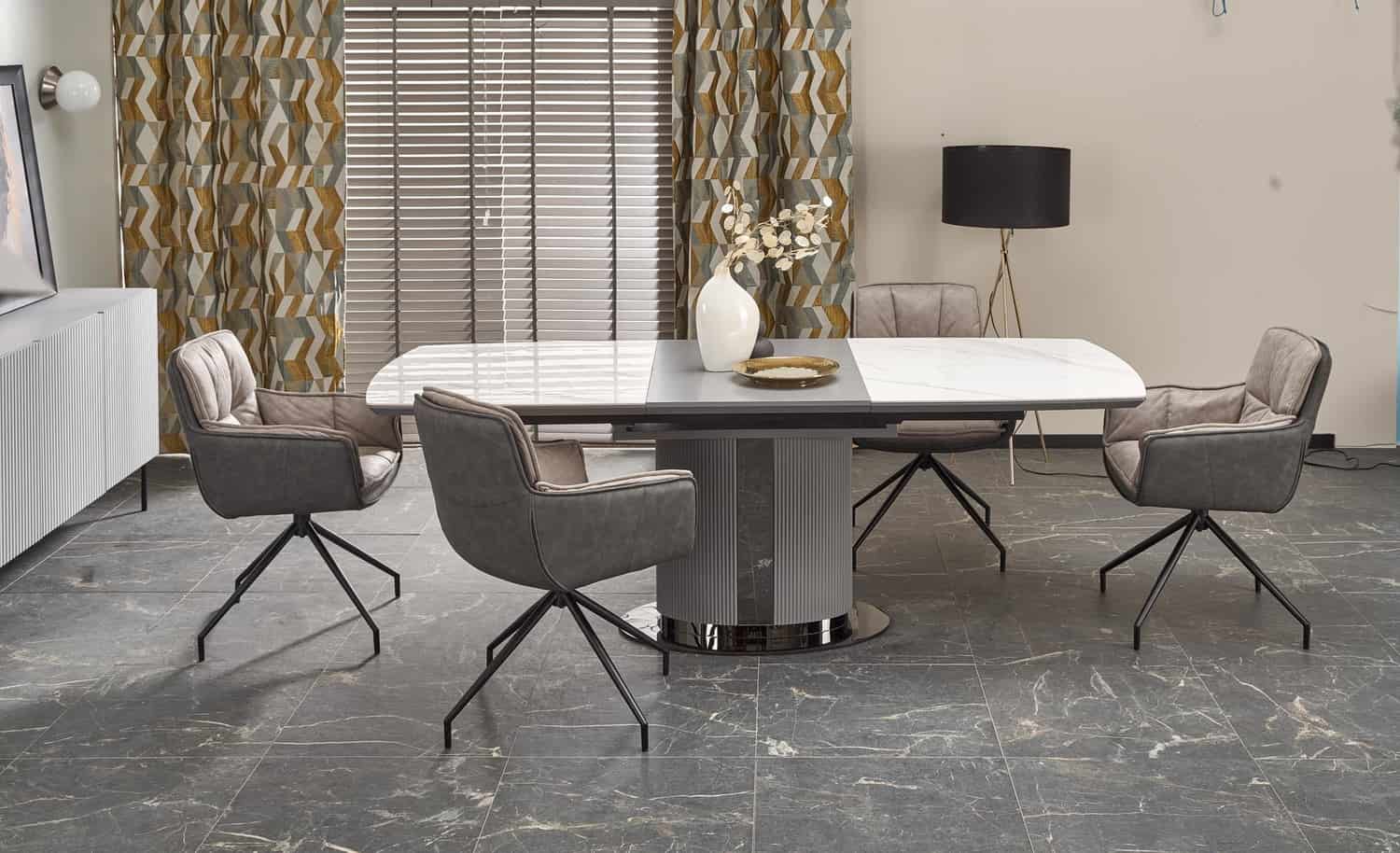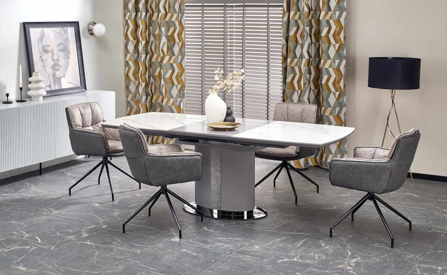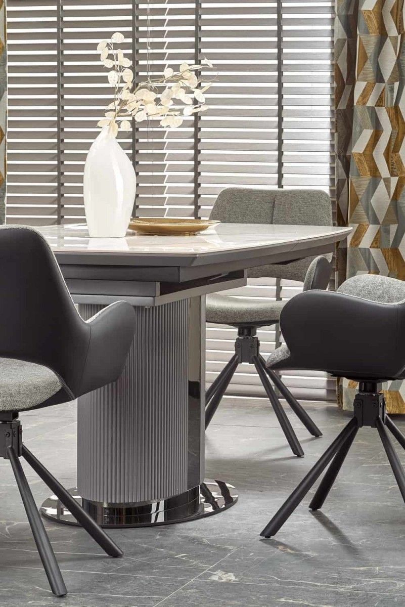 Стол обеденный Halmar DANCAN раскладной (белый мрамор/серый/черный)