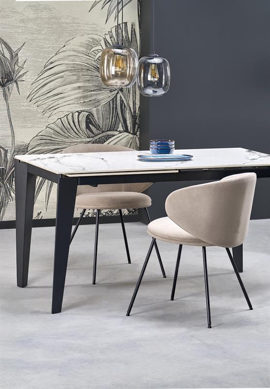 Стол обеденный Halmar FELIX раскладной (белый мрамор/черный)