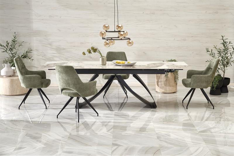 Стол обеденный Halmar HILARIO 180 раскладной (белый мрамор/черный)
