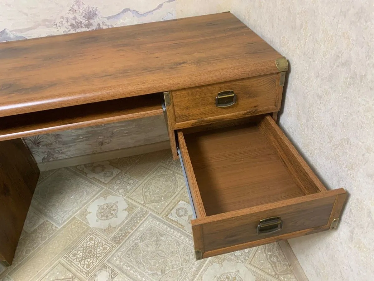 Белорусский письменный стол Indiana дуб саттер оборудован просторной столешницей, которая создаст максимум удобства во время работы и при выполнении заданий. Его ящики свободно двигаются по роликовым направляющим и выдерживают нагрузку до 3-х кг. На углах стола установлены металлические накладки, придающие ему стильный вид и защищающий от механических воздействий.