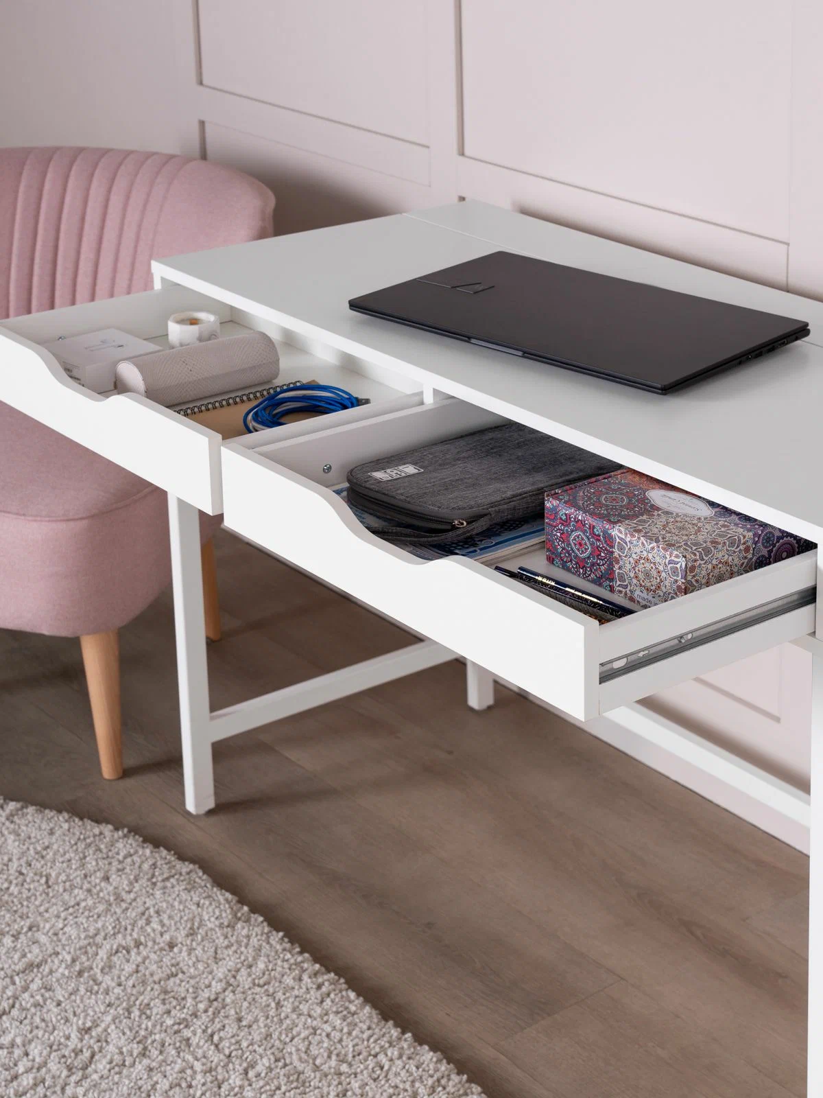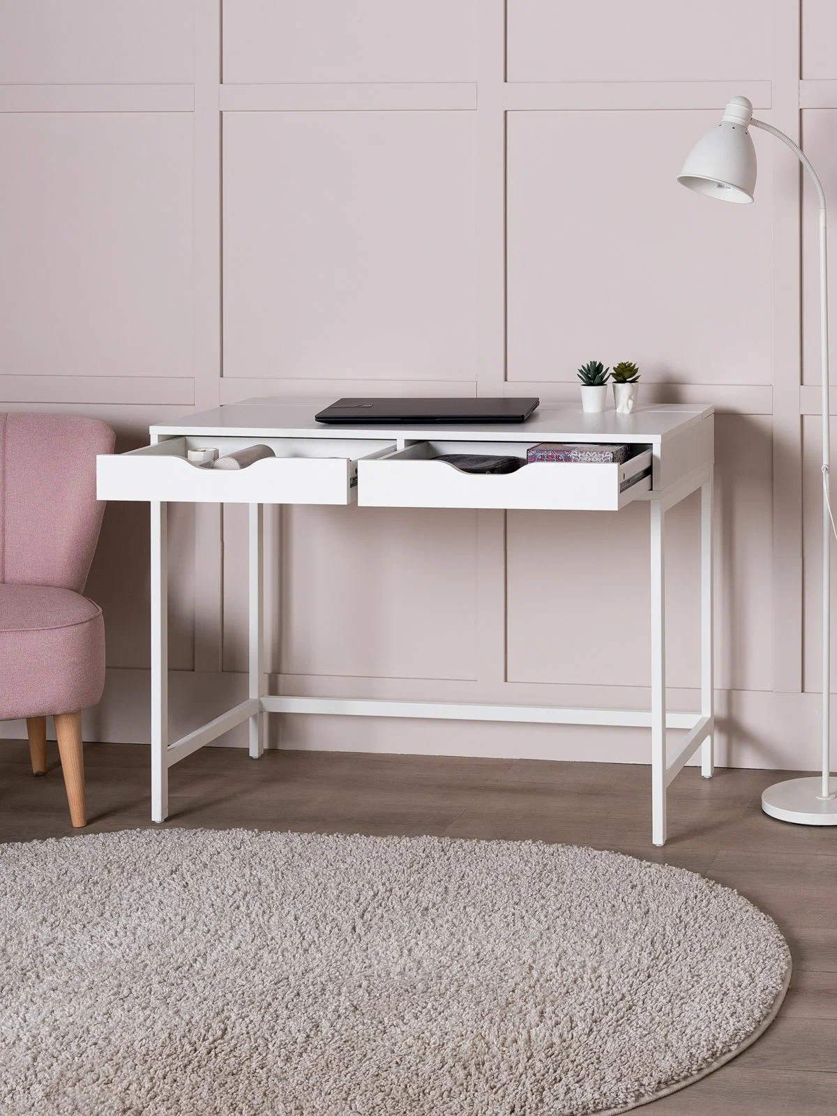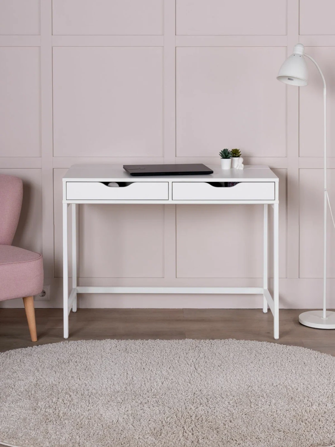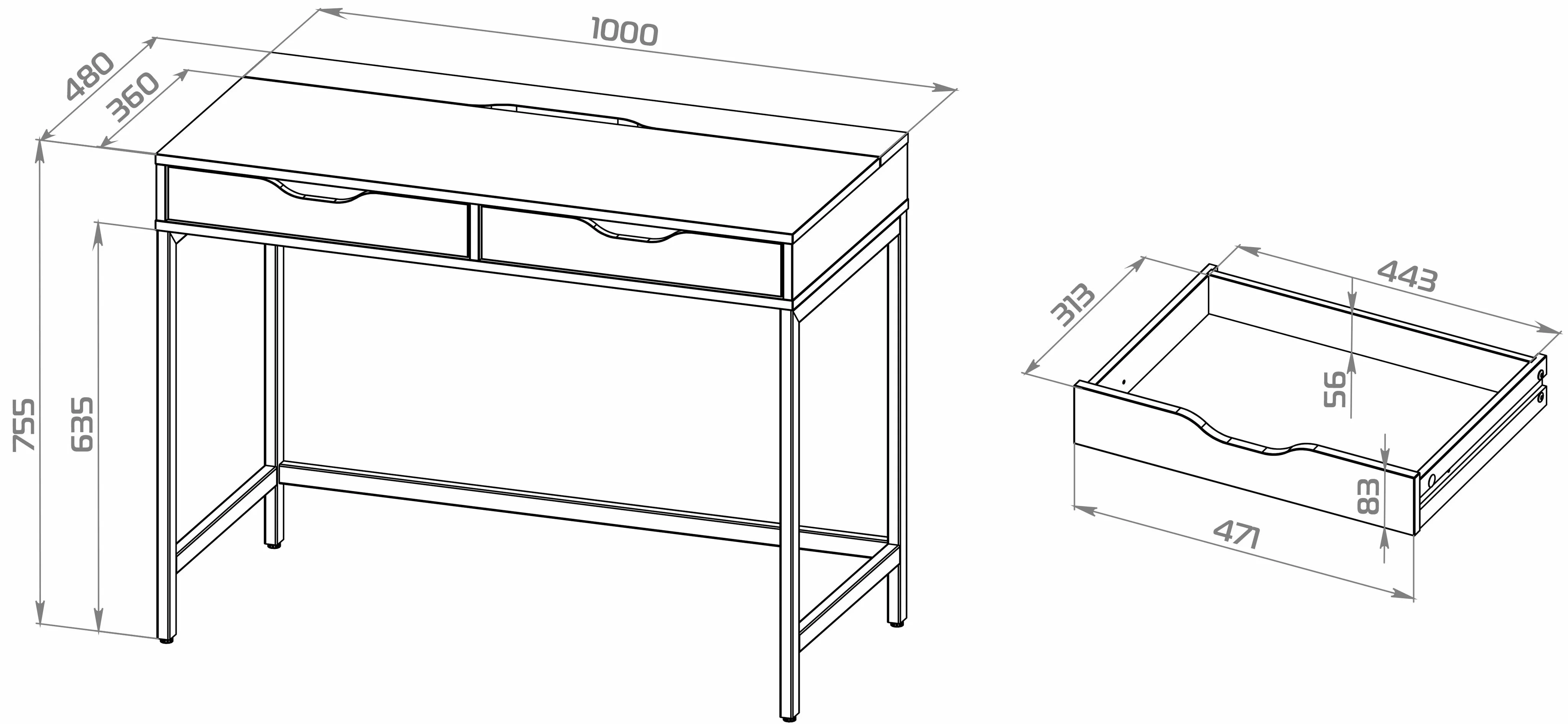 ИНГАР Д 100 стол письменный 100х76х48 – Идеальное соотношение цены и качества! Серия столов ИНГАР вдохновлена популярной серией ALEX от IKEA, и станет идеальным дополнением вашей квартиры. Почему выбирают ИНГАР Д 100 стол письменный 100х76х48? Письменный стол ИНГАР — это минималистичное и компактное решение для организации комфортного рабочего места как дома, так и в офисе. Он отличается лаконичной и надежной конструкцией, которая сочетает в себе прочность, долговечность и современный дизайн. Благодаря своей универсальности и функциональности, стол ИНГАР легко впишется в любое пространство, обеспечивая удобство, порядок и эстетическую гармонию. Стол оснащен двумя удобными выдвижными ящиками, предназначенными для хранения канцелярии, документов, учебников и других мелочей, которые всегда должны быть под рукой. Это решение позволяет поддерживать порядок и организованность, создавая комфортные условия для работы, учебы или творчества. Так же стол оснащен нишей для организации проводов и удлинителей, что позволит сохранять порядок на рабочей поверхности. Металлическое основание добавляет конструкции прочности и монолитности. Благодаря продуманной конструкции, стол ИНГАР сочетает в себе функциональность, эргономичность и лаконичный дизайн, делая его идеальным выбором для любого пространства. Это идеальное решение для тех, кто ценит практичность, качество и современный стиль без лишних деталей. Письменный стол ИНГАР станет надежным помощником в организации рабочего процесса и стильным дополнением вашего интерьера.