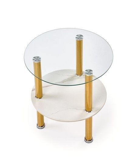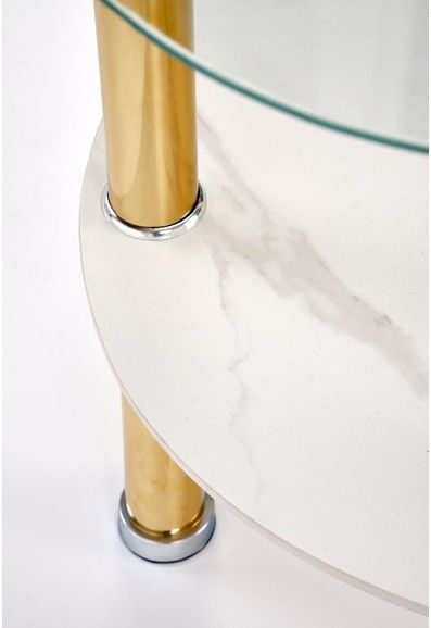 Стол журнальный Halmar DUCAT S (белый мрамор/прозрачный/золотой)