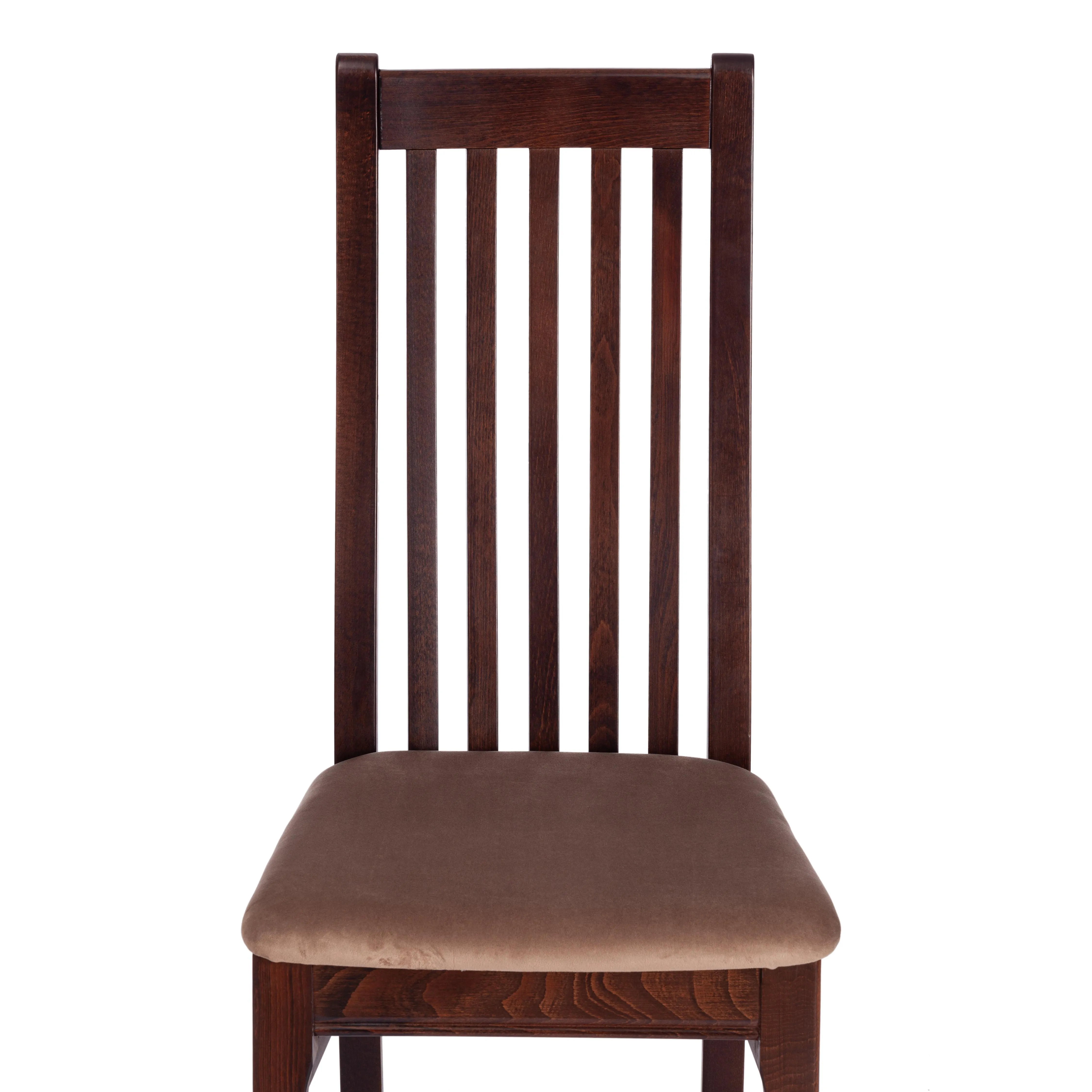 Классический деревянный стул DOLCE из Миланской коллекции - незаменимый предмет мебели на кухне, в гостиной, в спальне или столовой. Высокая удобная прямоугольная форма спинки обеспечивает анатомический изгиб, идеально поддерживающий спину во время сидения, тонкие устойчивые ножки и прочное мягкое сиденье помогут создать атмосферу комфорта и уюта в вашем доме. Экологически безопасный каркас стула изготовлен из высококачественной буковой древесины, что обеспечивает его долговечность и надежность. Он не требует сложного ухода, устойчив к механическому воздействию, что позволяет использовать стул на протяжении многих лет. Все элементы стула соединены между собой с помощью надежных шиповых соединений на клею и дополнительно закреплены шкантами. Это обеспечивает прочность и устойчивость всей конструкции стула. Сиденье стула крепится к каркасу через косынки и с помощью пластиковых уголков, что придает ему дополнительную устойчивость. Стул окрашен полиуретановым грунтом и лаком, а также тонирован спиртовыми морилками, что придает ему элегантный и стильный внешний вид. Модель прекрасно сочетается с различными видами обеденных столов и создает элегантную атмосферу в помещении. Мягкое сиденье, обито велюром который подойдет для любого интерьера . Стул в цвете Tobacco подойдет для загородного дома и городской квартиры, кухни, гостиной, ресторана или кафе, впишется в любой интерьер. Практичная и оригинальная модель DOLCE обладает прекрасными эстетическими свойствами и долговечностью. Стул DOLCE поставляется в собранном виде, что позволяет избежать дополнительных хлопот по его сборке. Это идеальный выбор для тех, кто ценит комфорт, качество и стиль в одном продукте.Максимальная нагрузка 120 кг.