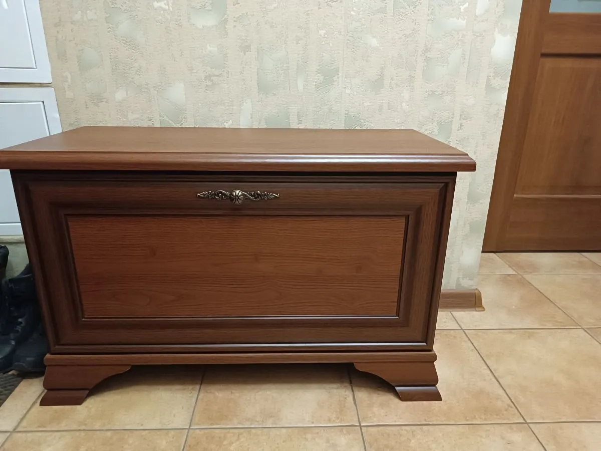 Тумбочка шириной 80 см, высотой 50 см и глубиной 35 см не займет большого пространства и поможет организовать уютный уголок для хранения домашних тапочек и строгих туфель. Заломы и вмятины на обуви не остаются. Строгий вид и лаконичная отделка позволит вписать ее в классический, неоклассический и современный интерьер.