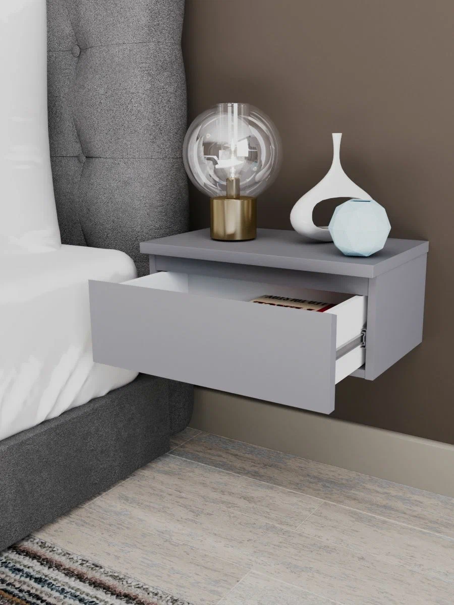 ВАРМА тумба подвесная 50х21х30 — элегантность и качество в каждой детали! Серия мебели ВАРМА вдохновлена популярной серией MALM и BILLY от IKEA, и станет идеальным дополнением вашей квартиры. Лаконичный дизайн комодов гармонично впишется в любой интерьер, а компактные размеры не займут много места. Почему выбирают подвесную тумбу ВАРМА? Тумба ВАРМА — это уникальное решение для прикроватного хранения, которое идеально сочетает в себе стиль и практичность. Главное отличие этой тумбы от других — что она оставляет пространство под ней свободным, что облегчает процесс уборки и делает интерьер более воздушным и свободным, а подкроватные ящики выдвигаются без излишних манипуляций. Верхняя полка тумбы станет удобным местом для светильника, создающего уютную атмосферу для чтения, кружки утреннего кофе или телефона на зарядке. Дополнительно тумба оснащена вместительным выдвижным ящиком, где можно организованно хранить вещи, которые используются реже: книги, планшет, аксессуары или важные мелочи. Серый и белый цвета покрыты прочной эмалью. Эмалевое покрытие создает гладкую, ровную поверхность с приятным матовым блеском, добавляя мебели изысканности и визуальной легкости. Оно устойчиво к царапинам, влаге и выгоранию, что делает комод долговечным и простым в уходе. Тумба идеально сочетается с кроватями и всей серией ВАРМА. Тумба ВАРМА — это не просто место для хранения, а настоящий акцент в интерьере. Она подойдет для спальни, гостиной или прихожей, помогая поддерживать порядок и создавая атмосферу уюта. Она станет надежным и стильным спутником на долгие годы.