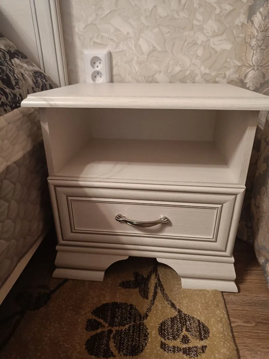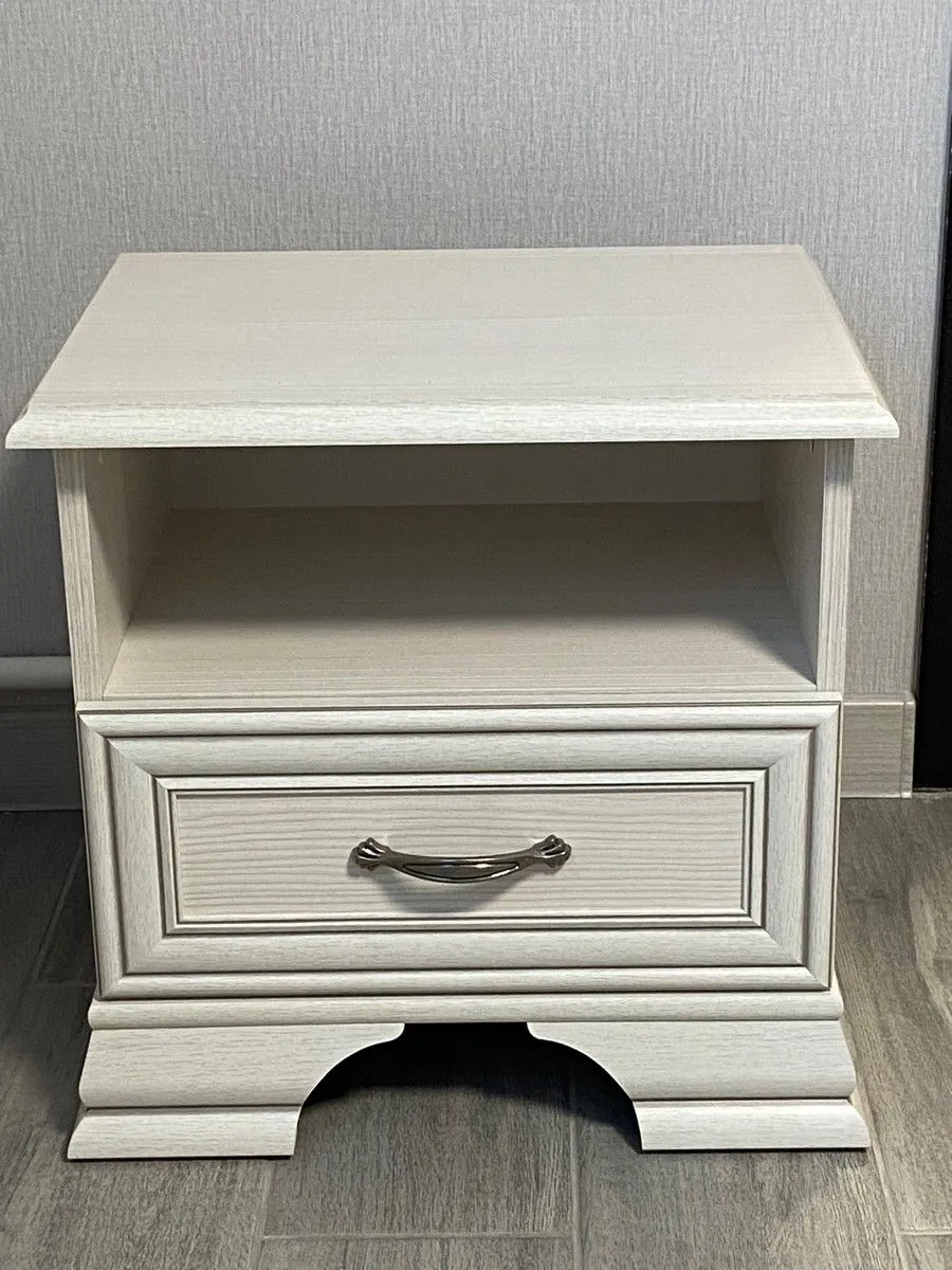 Тумбочку брали к гарнитуру Тиффани специально под цветы. Вписалась хорошо. Сборка простая,инструкция подробная , муж сам собрал за час. Рекомендую.
