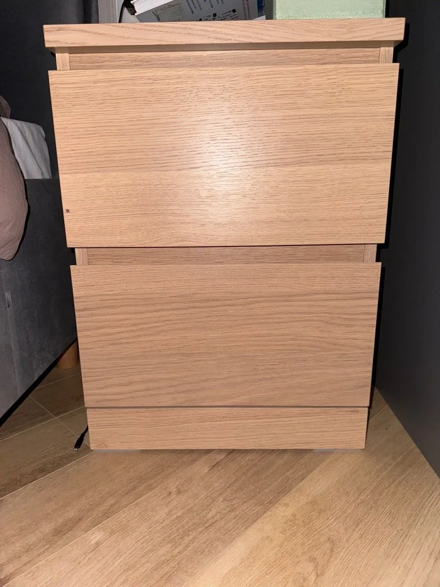 Тумбочка оригинал икеа судя по всему, выглядит достойно. Стенки толстые, видно что прослужит долго. Цвет красивый ненавязчивый. Направляющие тоже качественные. В общем одно удовольствие, сборка в том числе.