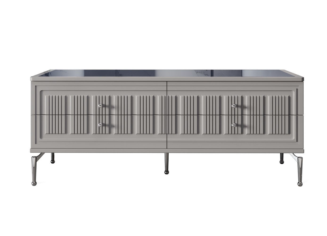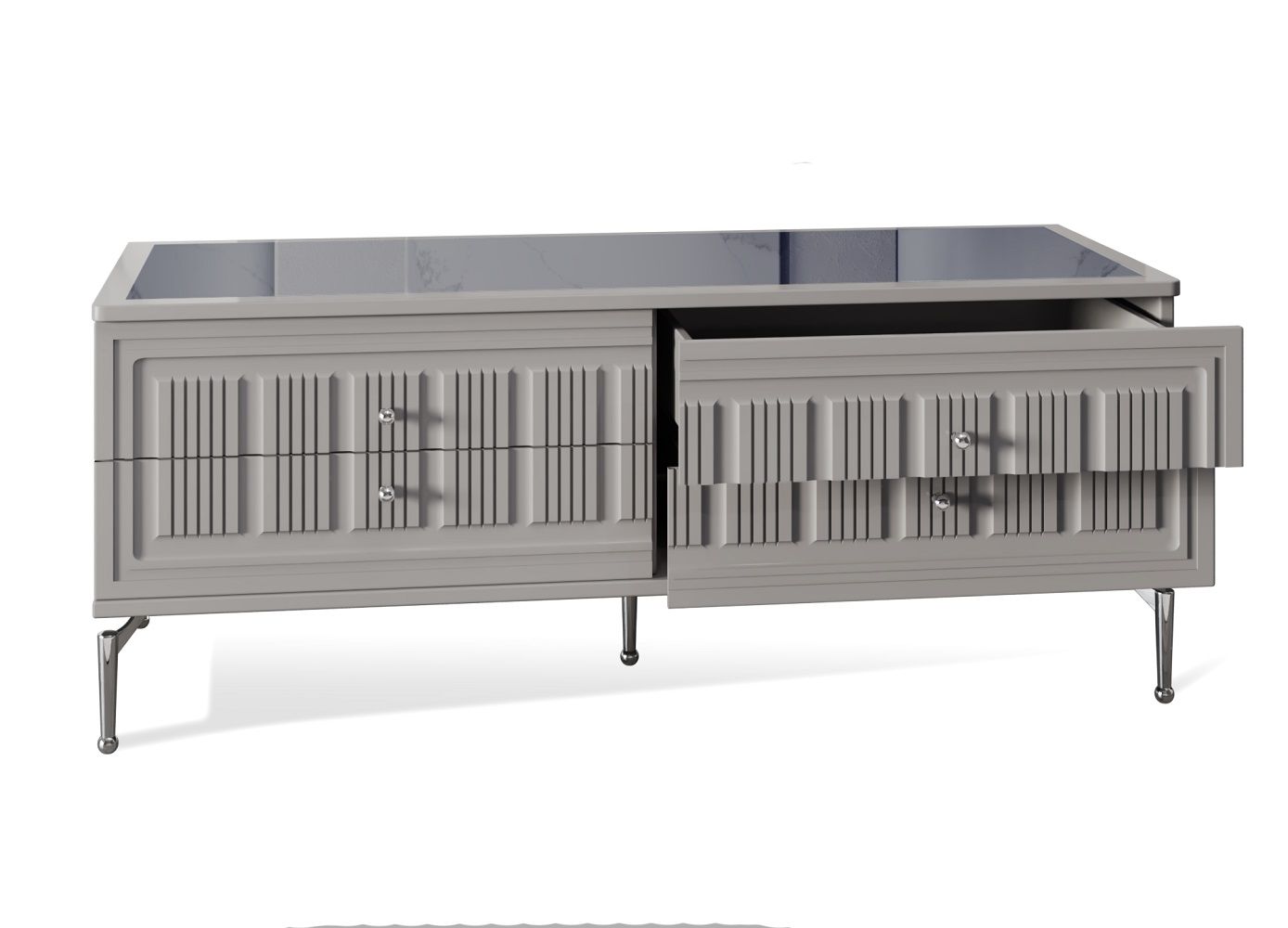 ФасадМДФ с фрезеровкой и вставкой из пластика под латунь/хром + стеклянная дверь с фрезеровкой МДФ;