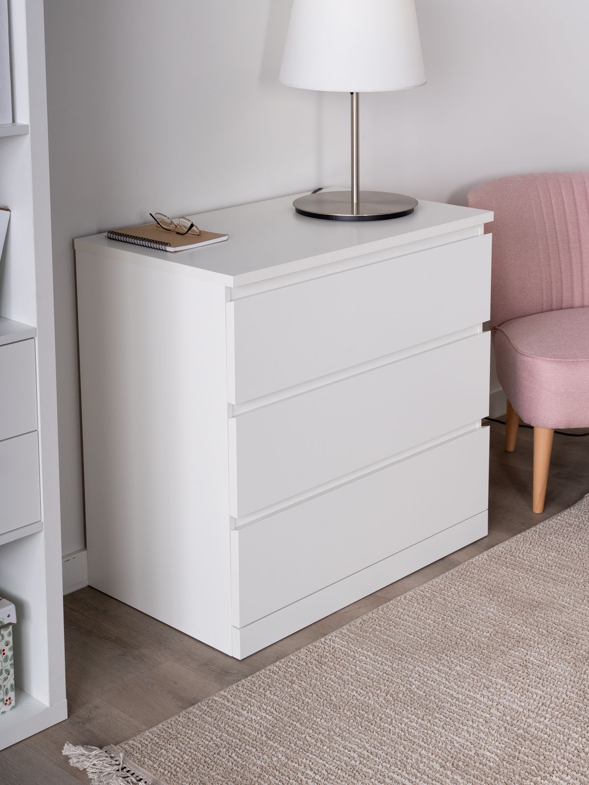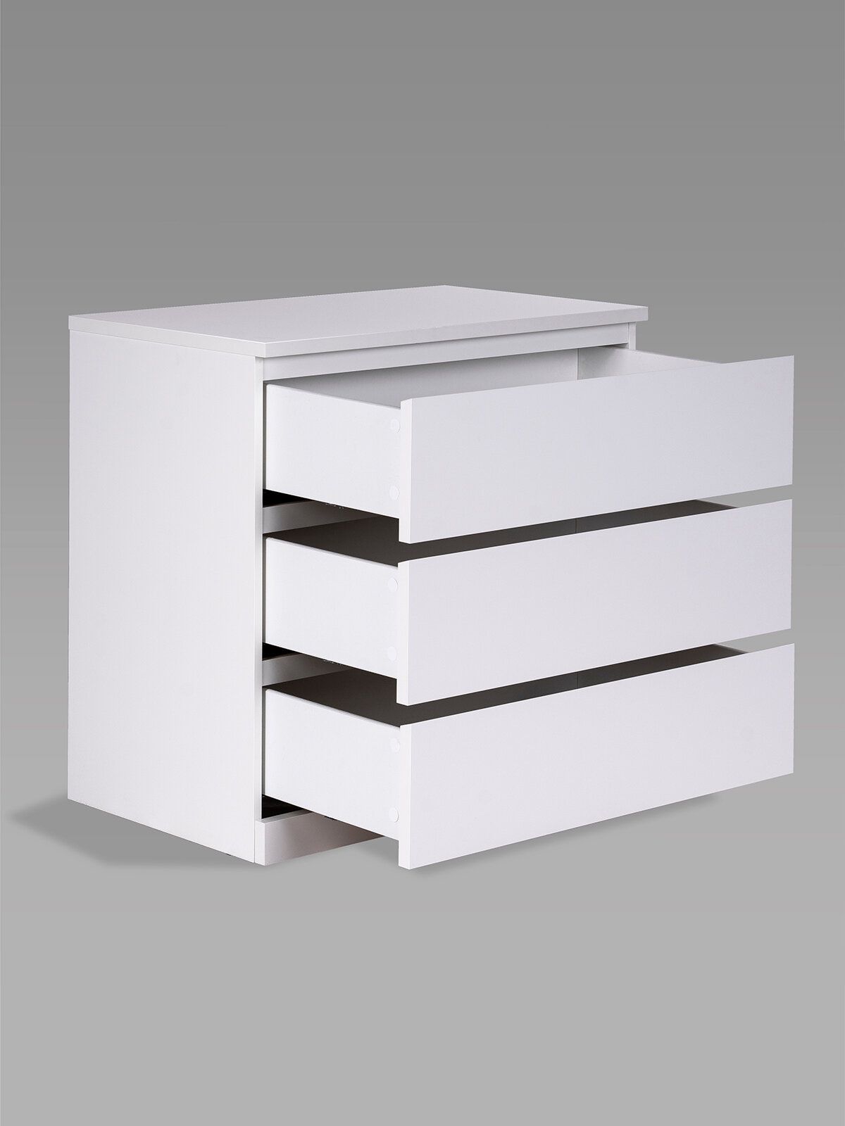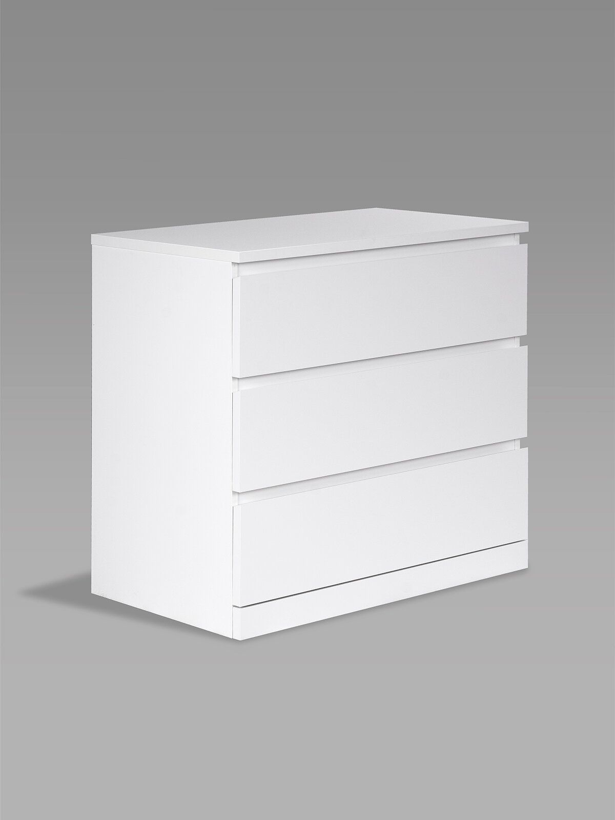 Комод ВАРМА ПРАЙМ 3 ящика 80х77х48 — элегантность и качество в каждой детали! Серия мебели ВАРМА вдохновлена популярными сериями MALM и BILLY от IKEA, и станет идеальным дополнением вашей квартиры. Лаконичный дизайн комодов гармонично впишется в любой интерьер, а компактные размеры не займут много места. Почему выбирают комод ВАРМА ПРАЙМ 3 ящика 80х77х48? Комод ВАРМА ПРАЙМ — ультимативный комод, который позволяет организовать хранение всех необходимых вещей – в верхние необходимые мелочи, чтобы были всегда под рукой, в других – подушек, одеял, белья или одежды, ведь благодаря глубине и максимальной нагрузке 8 кг они подходят для любых целей. А на столешнице комода можно поставить все, от рамок и ваз до аквариума – ведь максимальная нагрузка на нее целых 15 кг! Компактный размер позволяет разместить его в небольших пространствах. Комод ВАРМА представлен в трех вариантах: Белый цвет покрыт прочной эмалью. Эмалевое покрытие создает гладкую, ровную поверхность с приятным матовым блеском, добавляя мебели изысканности и визуальной легкости. Оно устойчиво к царапинам, влаге и выгоранию, что делает комод долговечным и простым в уходе. Цвета \"черный ясень\" и \"беленый дуб\" покрыты натуральным шпоном. Шпон сохраняет естественную текстуру древесины, придавая комоду благородный внешний вид и добавляя интерьеру уют и теплоту. Такая мебель выглядит дорого и стильно, оставаясь при этом доступной по цене. Доводчики обеспечивают плавное и тихое закрывание ящиков. Направляющие полного выдвижения позволяют выдвигать ящик целиком, предоставляя полный доступ к его содержимому, упрощая поиск вещей и организацию внутреннего пространства ящика.
