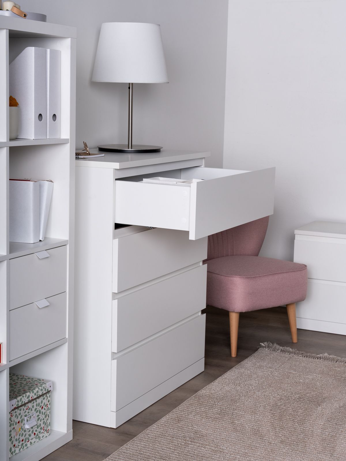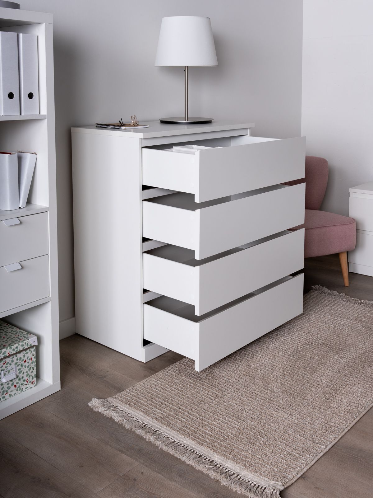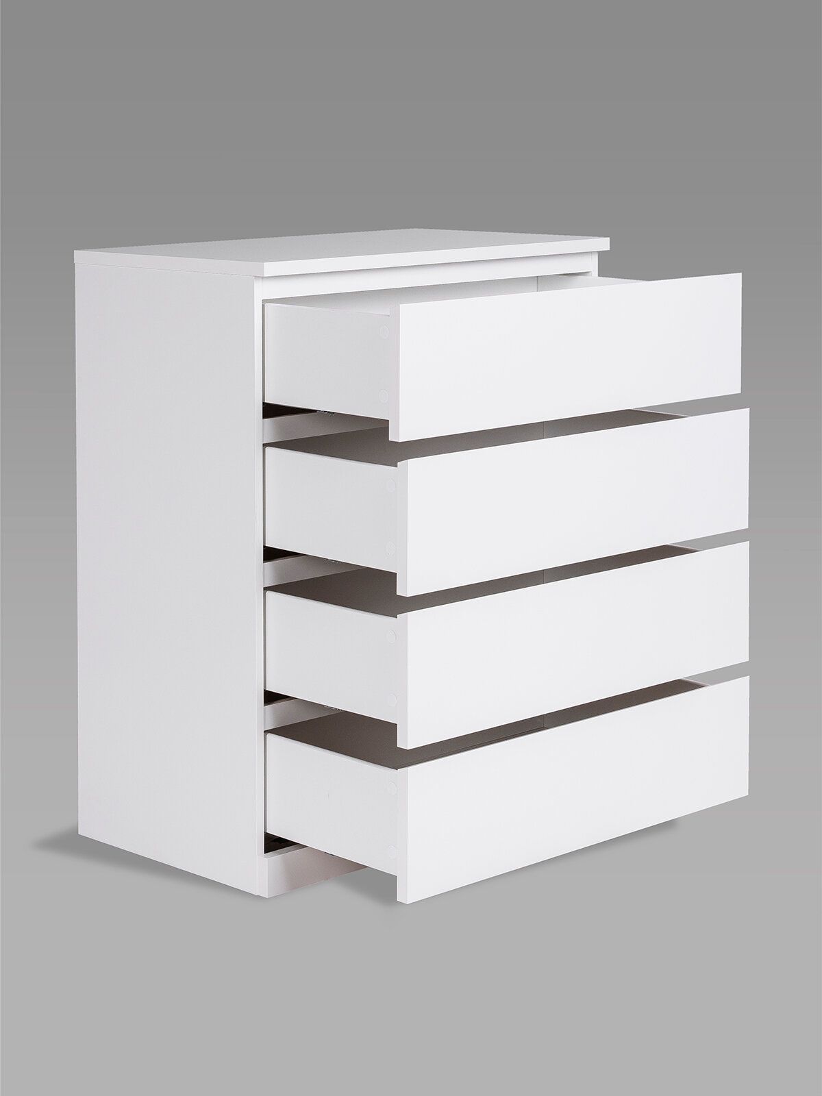 Почему выбирают комод ВАРМА ПРАЙМ 4 комод 80x100x48? Комод ВАРМА ПРАЙМ — ультимативный комод, который позволяет организовать хранение всех необходимых вещей – в верхние необходимые мелочи, чтобы были всегда под рукой, в других – подушек, одеял, белья или одежды, ведь благодаря глубине и максимальной нагрузке 8 кг они подходят для любых целей. А на столешнице комода можно поставить все, от рамок и ваз до аквариума – ведь максимальная нагрузка на нее целых 15 кг! Компактный размер позволяет разместить его в небольших пространствах. Комод ВАРМА представлен в трех вариантах: Белый цвет покрыт прочной эмалью. Эмалевое покрытие создает гладкую, ровную поверхность с приятным матовым блеском, добавляя мебели изысканности и визуальной легкости. Оно устойчиво к царапинам, влаге и выгоранию, что делает комод долговечным и простым в уходе. Цвета \"коричневый ясень\" и \"беленый дуб\" покрыты натуральным шпоном. Шпон сохраняет естественную текстуру древесины, придавая комоду благородный внешний вид и добавляя интерьеру уют и теплоту. Такая мебель выглядит дорого и стильно, оставаясь при этом доступной по цене. Доводчики обеспечивают плавное и тихое закрывание ящиков. Направляющие полного выдвижения позволяют выдвигать ящик целиком, предоставляя полный доступ к его содержимому, упрощая поиск вещей и организацию внутреннего пространства ящика.