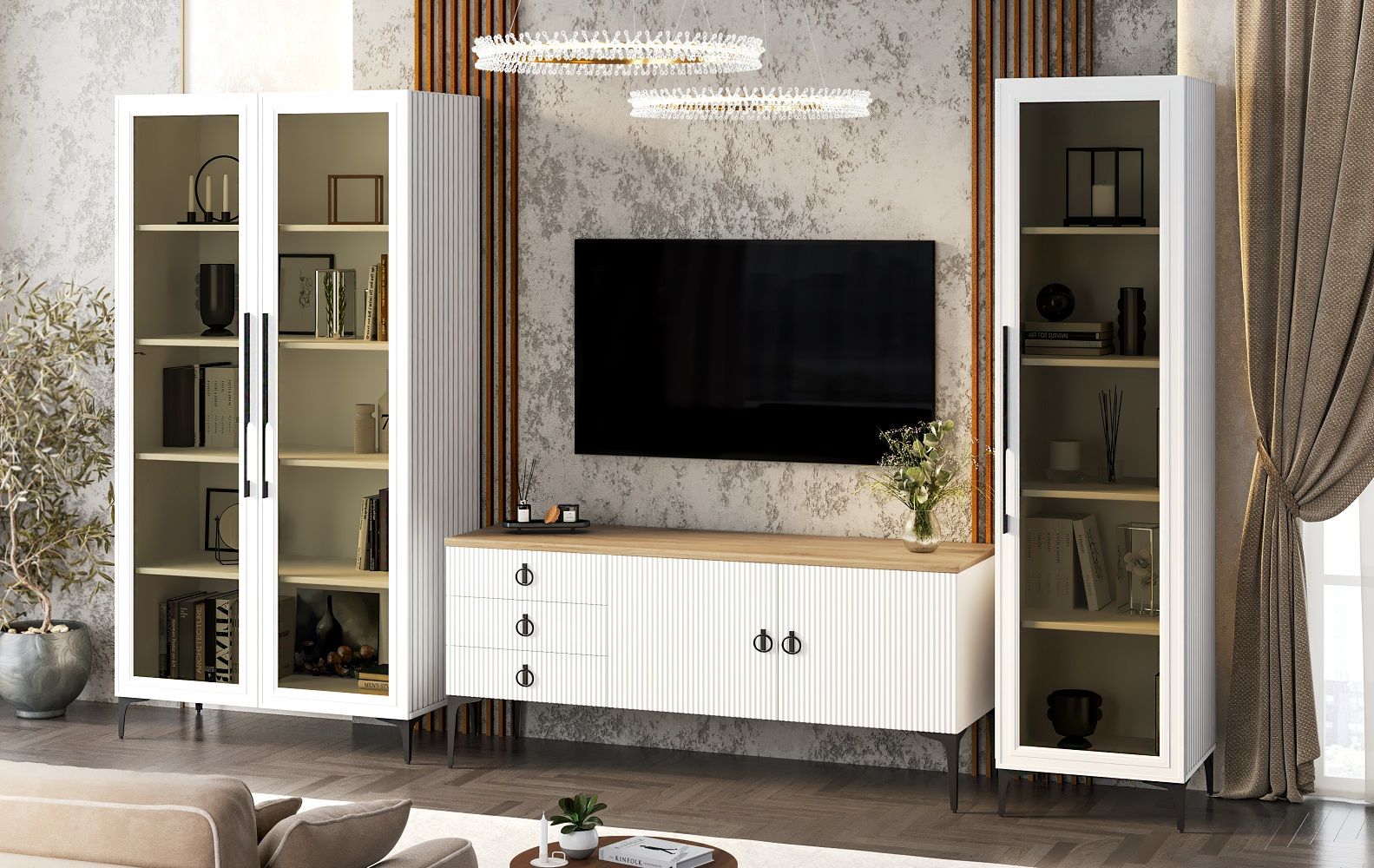Каждая деталь тщательно продумана, чтобы подарить вам не только максимальный комфорт и эстетическое удовольствие, но и уверенность в высоком качестве мебели. Корпуса и столешницы модулей выполнены из ламинированной древесной плиты европейского качества, Фасады из природного МДФ задекорированы рельефной фрезеровкой и авторский стиль фабрики ЭРА — это финишное покрытие матовая итальянская эмаль ярко серого цвета.