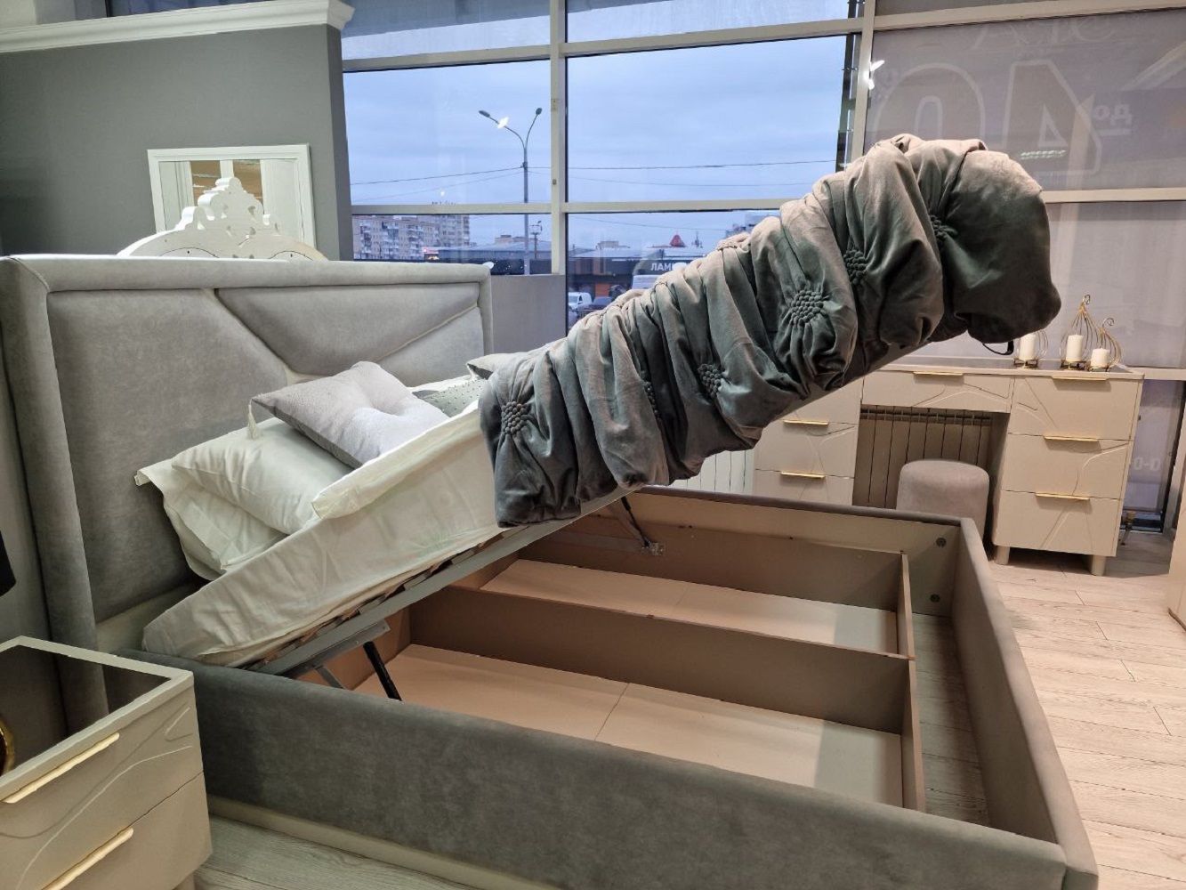 Ящик с подъемным механизмом Лейла 160x200 см серый